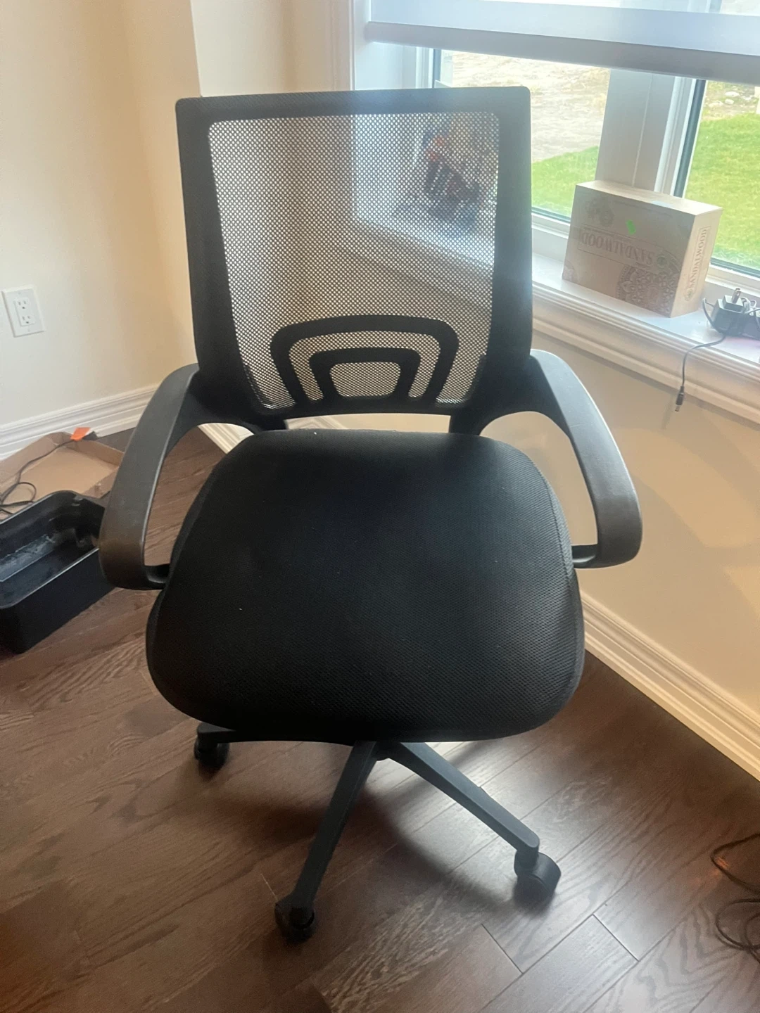 Buy & SellBlack Office ChairBlack Office Chair$36Selling a black office chair in good condition. It has a mesh back and a comfortable seat. Perfect for your home office!ConditionGoodWHERE TO MEETCheck LocationView MapSELLERNveyLamoureaux100 reviews1 chats·3 favorites·27 viewsSEND CHAT TO SELLERHi Nvey! I’m interested in your listing.Hi Nvey! I’m interested in your listing.Get the Karrot app to chatSign In to chat