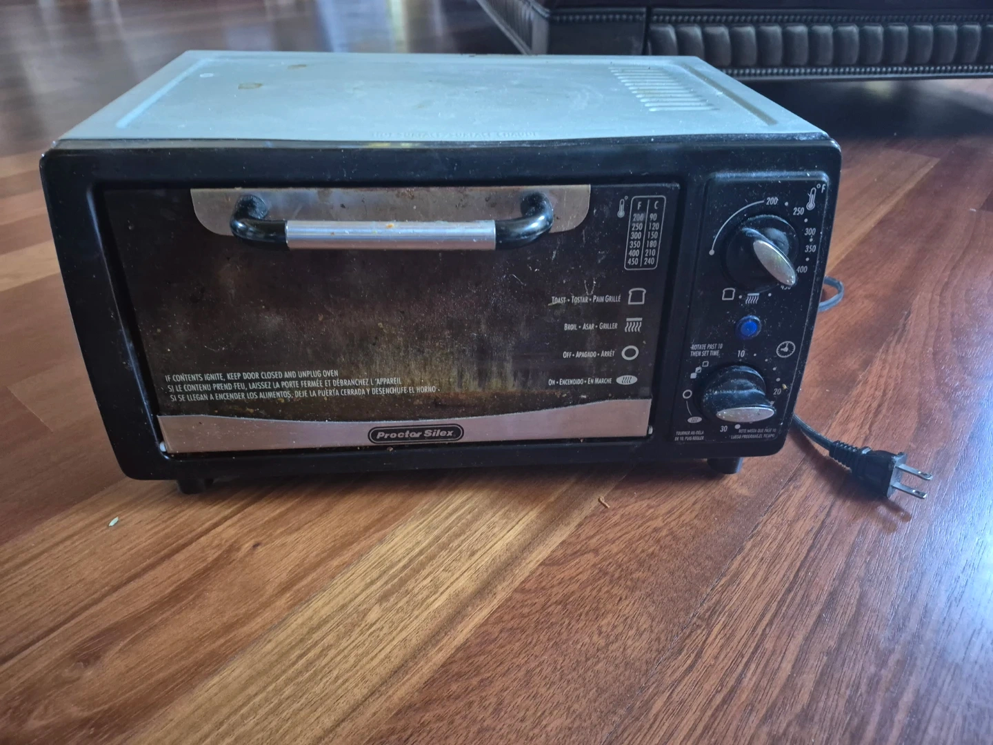 Selling a Proctor Silex toaster oven. It has settings for toast, broil, and on/off. Temperature ranges from 200 to 450 degrees Fahrenheit. It's perfect for small kitchens or quick meals