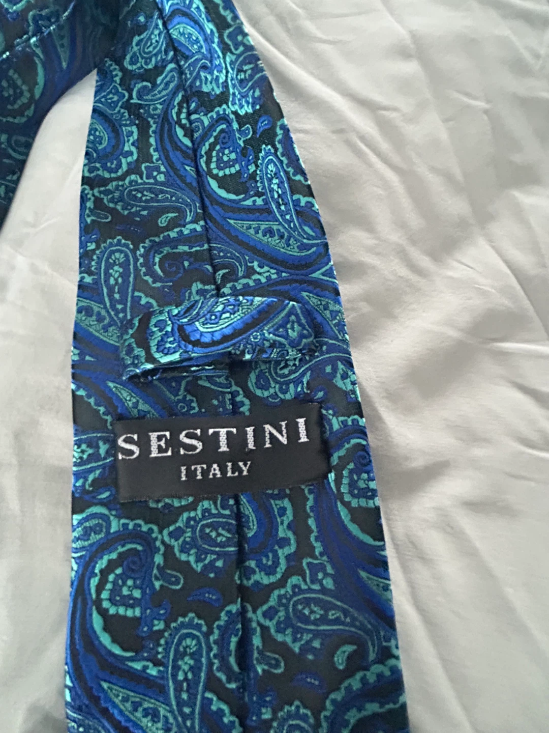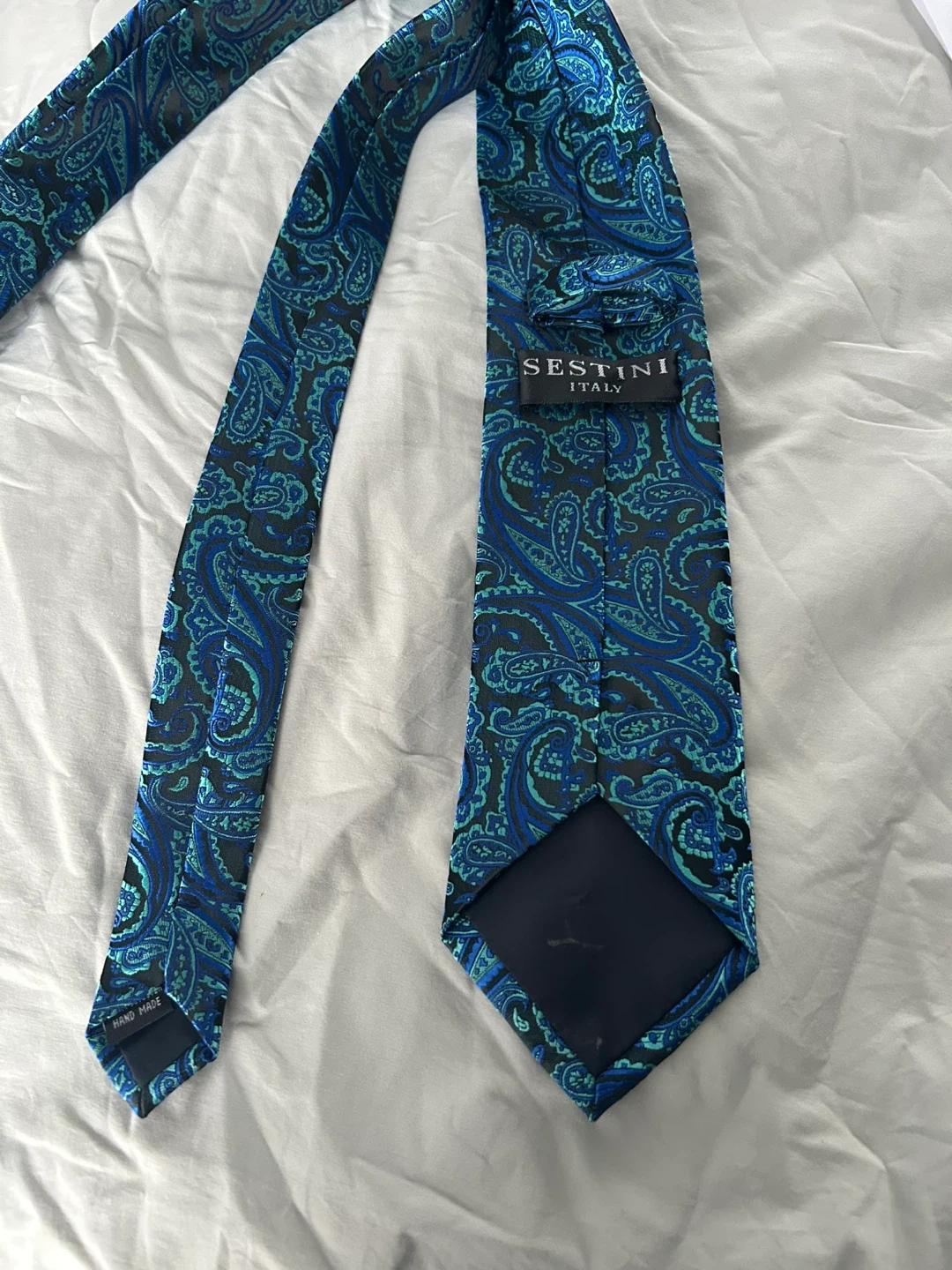 Selling a Sestini Italy tie, featuring a beautiful blue paisley pattern. It's handmade and in great condition!