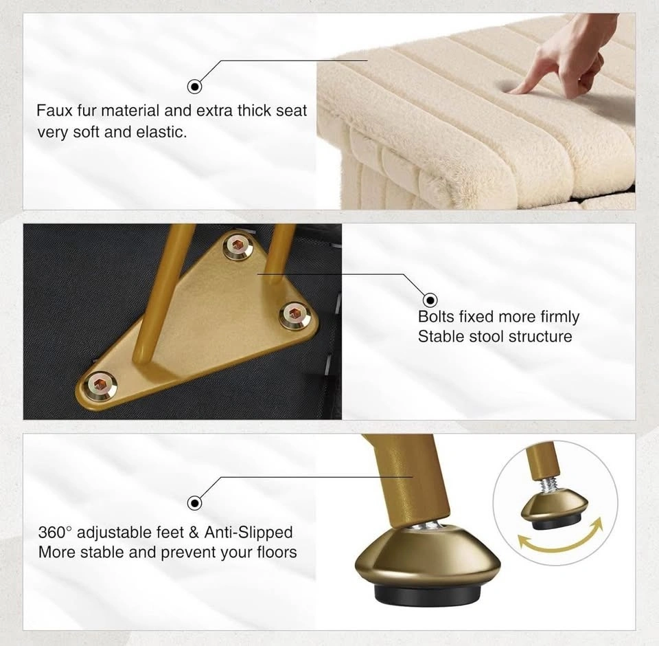 Furry Padded Seat, Modern Multifunctional Chairs for Makeup