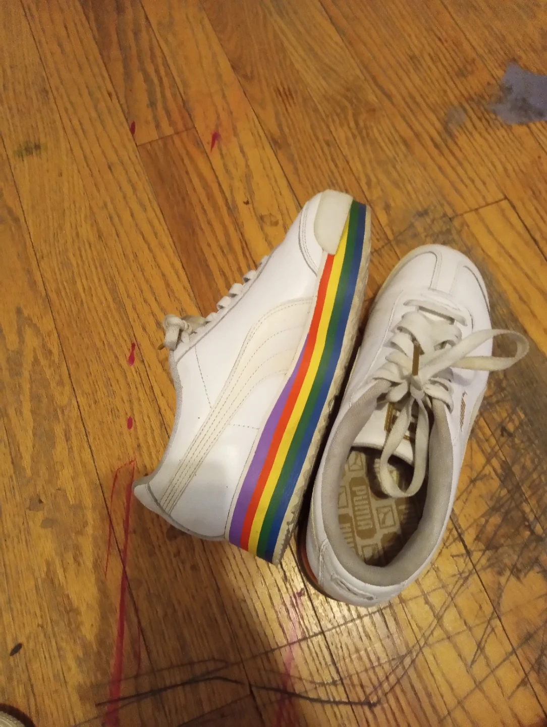 Buy & SellPuma White Rainbow Platform SneakersPuma White Rainbow Platform Sneakers$21Selling a pair of Puma platform sneakers! They're white with a fun rainbow stripe on the platform. These are in good condition and ready for a new owner!ConditionLike newSize7WHERE TO MEETCheck LocationView MapSELLERverifiedHeatherSouth Shore650 reviews1 chats·0 favorites·13 viewsSEND CHAT TO SELLERHi Heather! I’m interested in your listing.Hi Heather! I’m interested in your listing.Get the Karrot app to chatSign In to chat