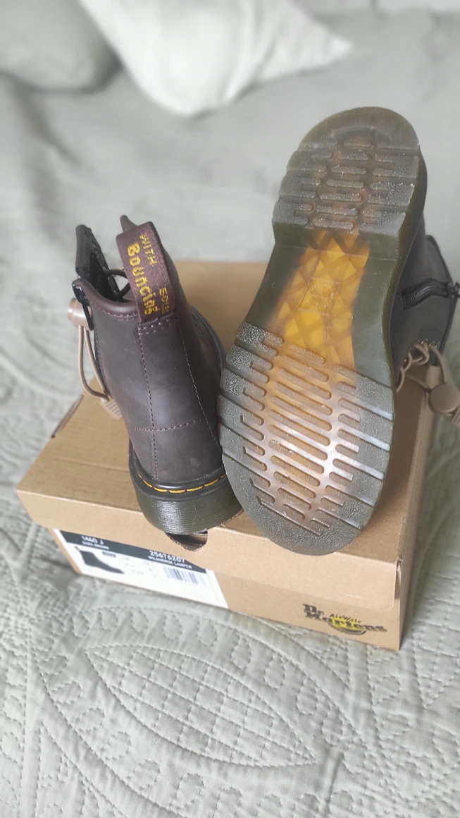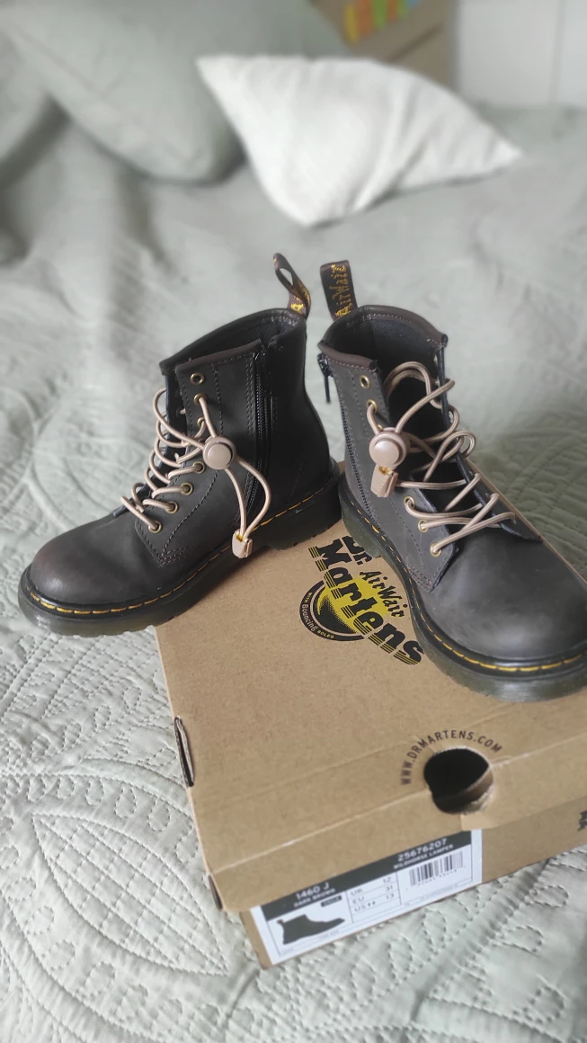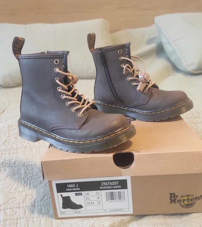 Dr. Martens 1460 J boots in dark brown. Wildhorse Lamper leather.