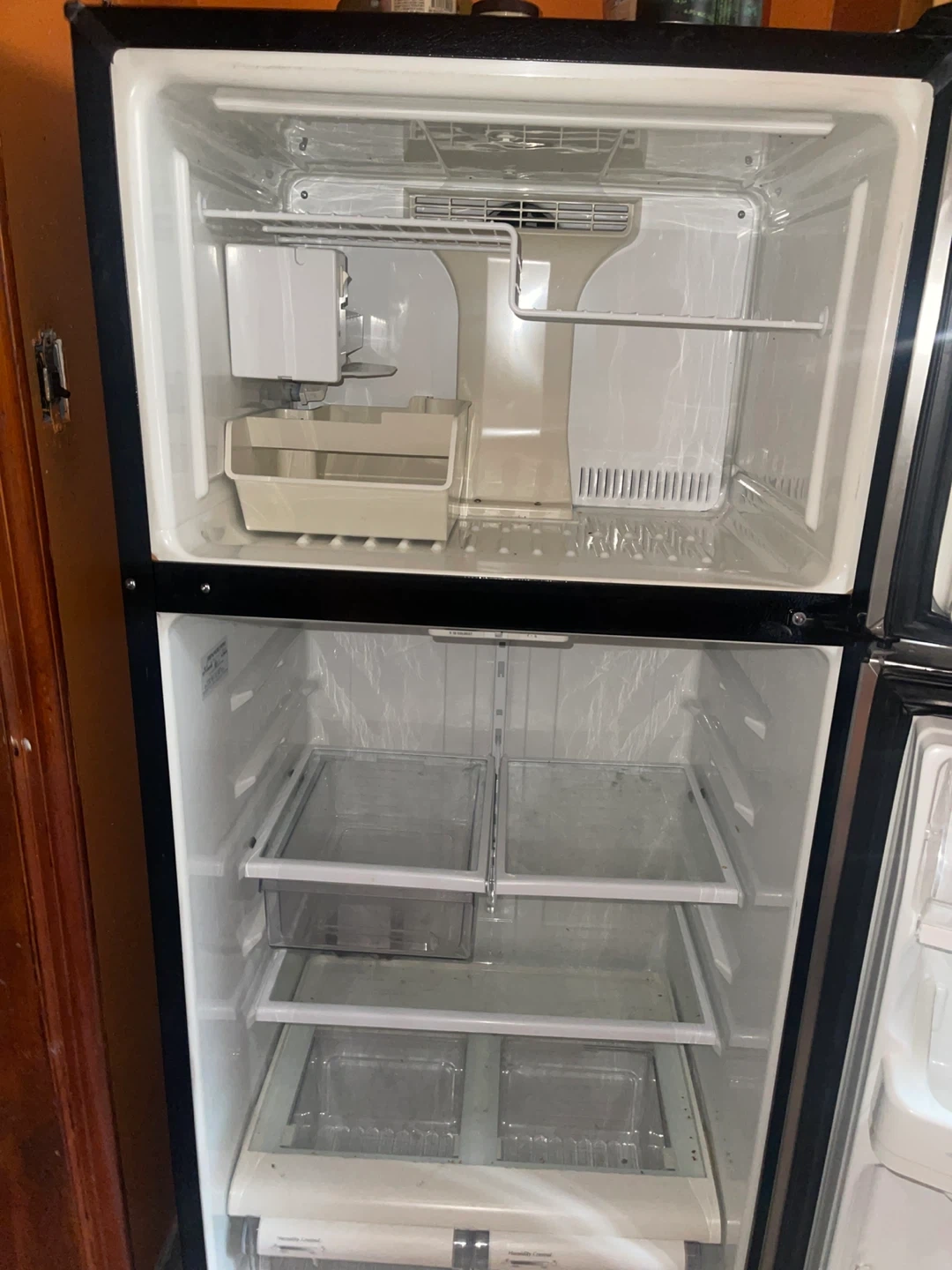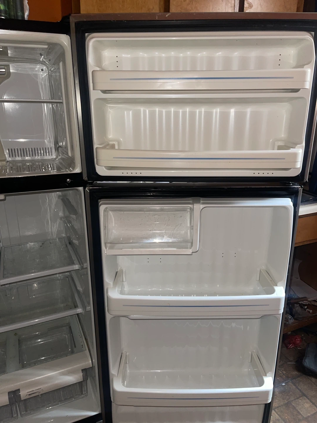 Selling a used refrigerator with ice maker . It's in great condition and ready to keep your food cold! It has a top freezer compartment and a spacious refrigerator section below. Perfect for an apartment. Feel free to message me with any questions!