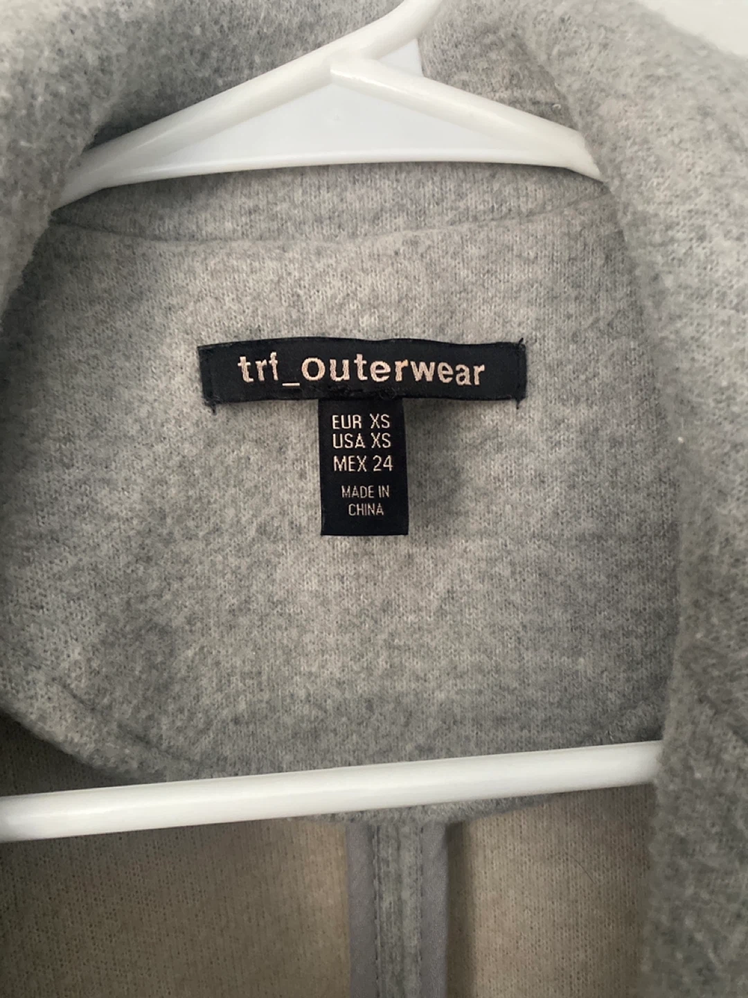Selling a gently used TRF Outerwear coat in size XS. It's a stylish grey colour and in great condition! Perfect for layering during the cooler months. Don't miss out!