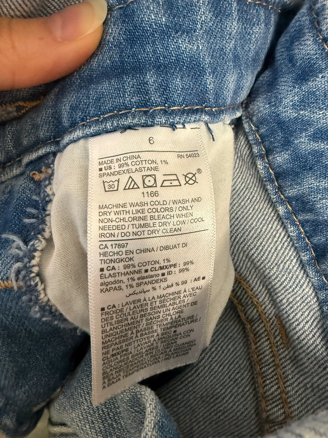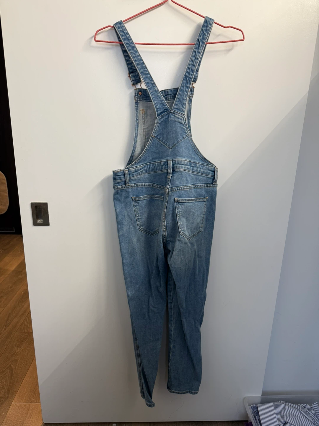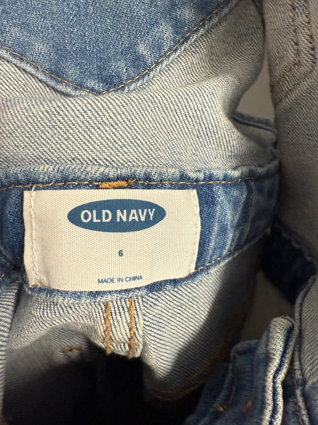 Selling a pair of Old Navy denim overalls in size 6! They're in great condition and made of 99% cotton and 1% spandex for a comfy fit. Perfect for a casual, everyday look!
