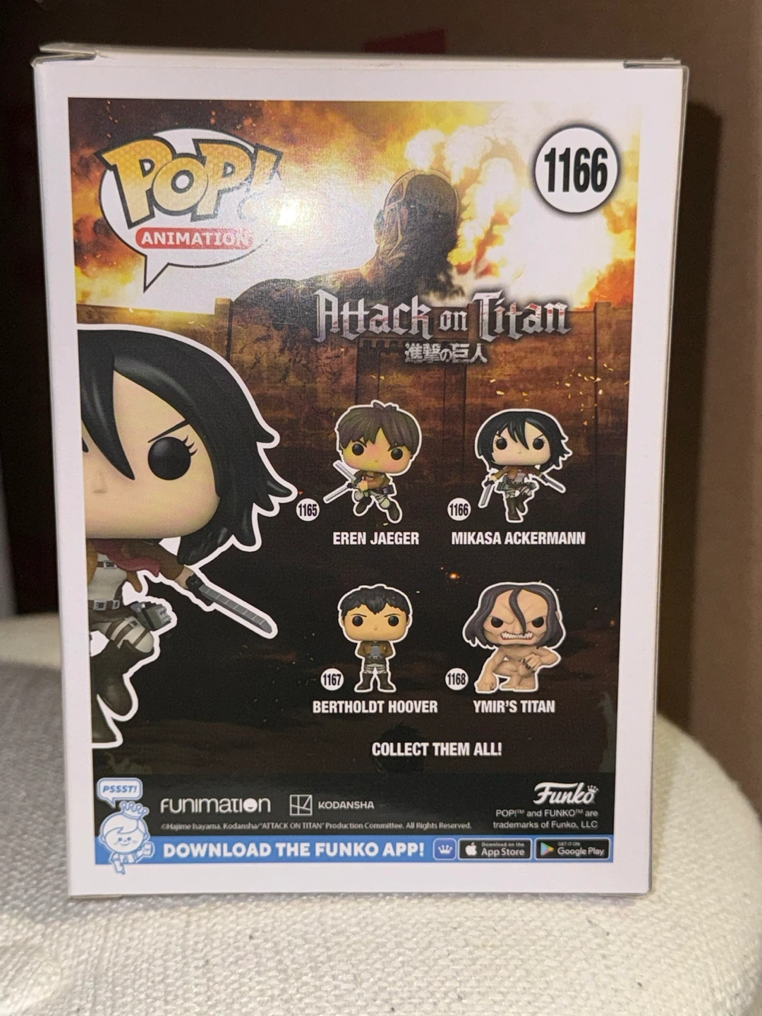 Buy & SellFunko Pop Mikasa Ackermann #1166Funko Pop Mikasa Ackermann #1166$26Selling a Funko Pop! figure of Mikasa Ackermann from Attack on Titans. This is number 1166 Pickup downtownWHERE TO MEETCheck LocationView MapSELLEREvaChurch Yonge Corridor31729 reviews0 chats·0 favorites·4 viewsSEND CHAT TO SELLERHi Eva! I’m interested in your listing.Hi Eva! I’m interested in your listing.Get the Karrot app to chatSign In to chat
