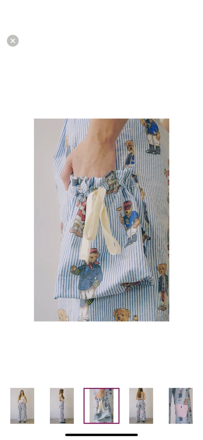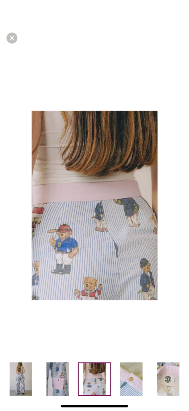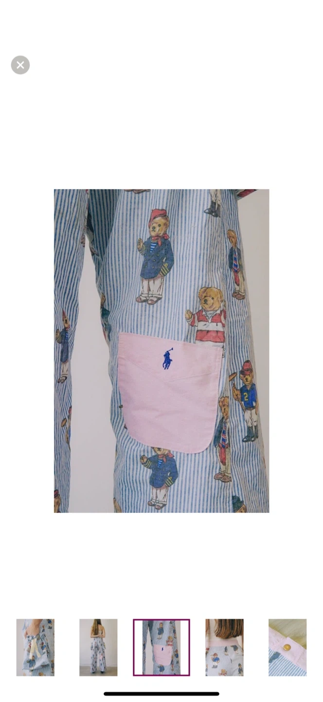 These adorable Ralph Lauren pajama pants feature a playful bear print on a blue and white striped background! The pants have a pink pocket with the Ralph Lauren logo. Perfect for lounging around the house in style!
