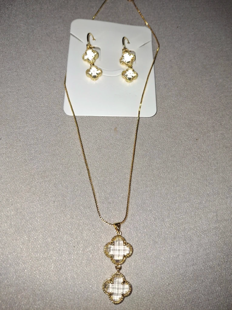 Buy & SellGold laminated Clover Necklace & Earrings SetGold laminated Clover Necklace & Earrings Set$13This is a beautiful gold-tone necklace and earrings set. The design features a clover motif. It's perfect for adding a touch of elegance to any outfit!EstadoNewWHERE TO MEET183 BROOKDALEView MapSELLERverifiedLINANew Rochelle Public Library680 reviews0 chats·0 favorites·4 viewsSEND CHAT TO SELLERHi LINA! I’m interested in your listing.Hi LINA! I’m interested in your listing.Get the Karrot app to chatSign In to chat