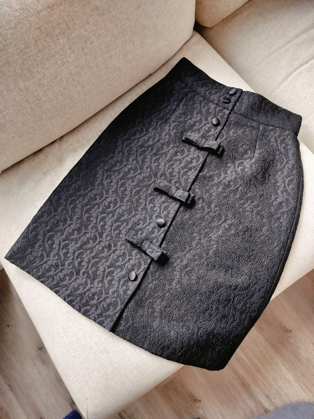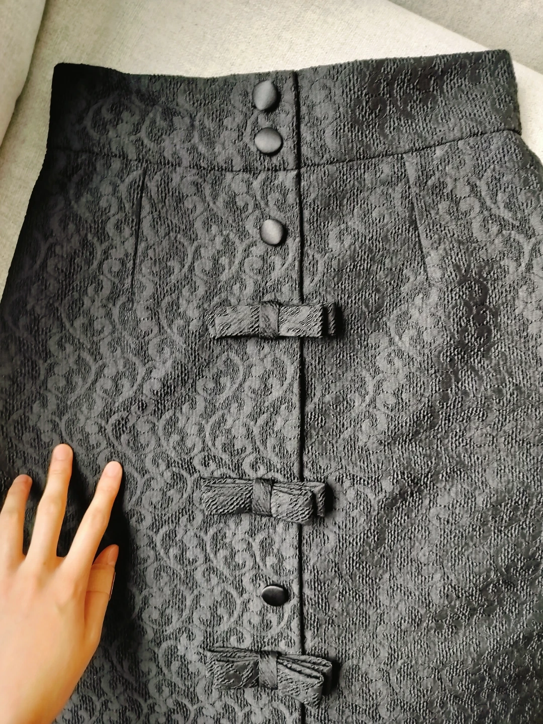 Selling a Dolce & Gabbana skirt in black. Decoeated with bows, covered buttons. It's a size 38 and made in Italy. Fully lined, super cute, can be dressed up or down! Pretty much like new