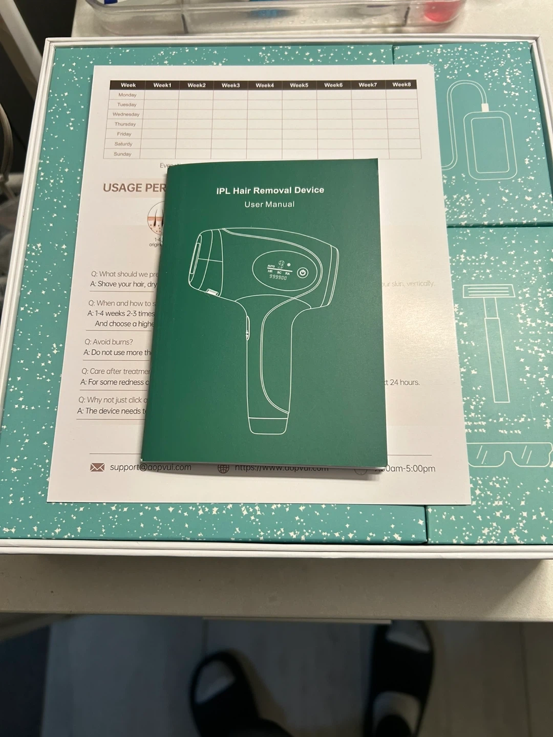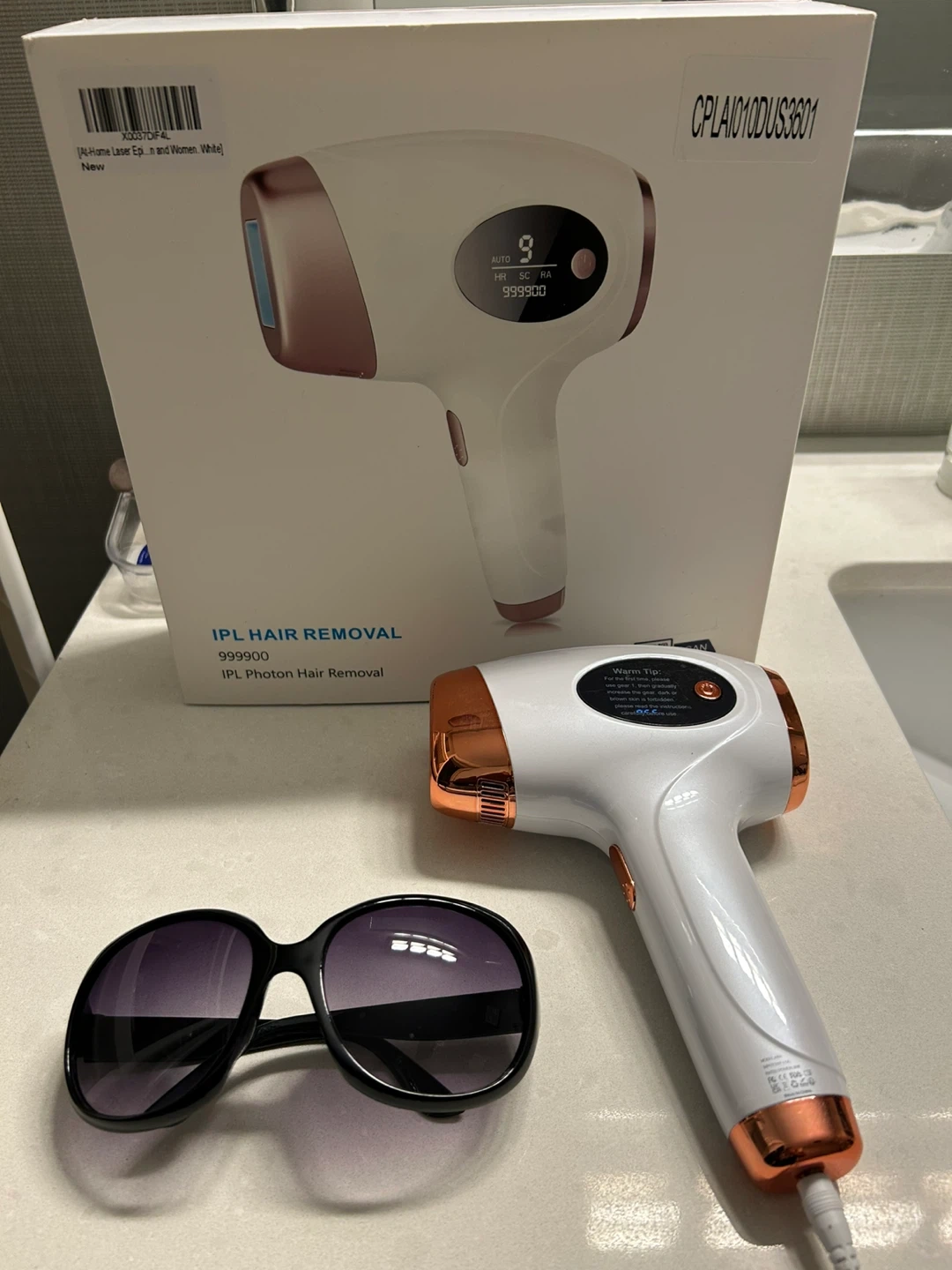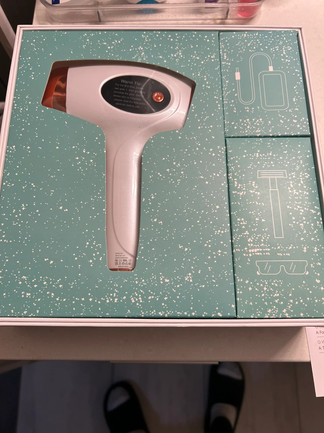 Selling an almost new IPL hair removal device! It comes in its original box with all the included accessories, including a razor and protective eyewear. The device is white with rose gold accents. It's designed for home use and is easy to operate. Perfect for achieving smooth skin!
