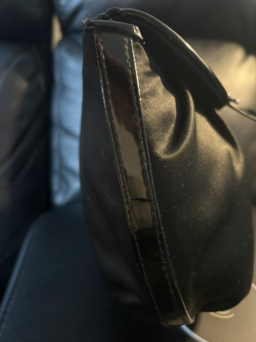 I'm selling a Dior black satin clutch. It has a silver 'D' logo on the front. It would be a great addition to your collection! 24cm x 20 cm. There is a little wear on the plastic part of the satin finish, but it is in perfect condition. I invite you to view my other items; If you are interested in any of them, I will give you a better price.
