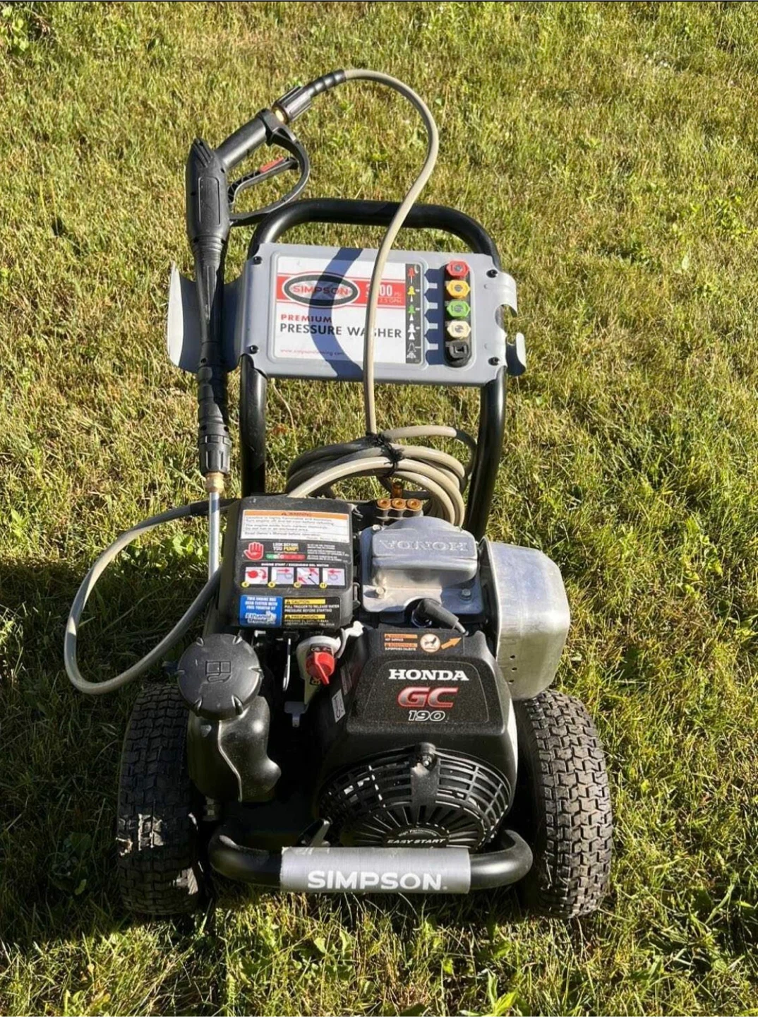 Get your outdoor spaces sparkling clean with this fantastic Simpson Premium Pressure Washer! This unit boasts a robust 3000 PSI of cleaning power, making short work of tough grime on driveways, patios, siding, vehicles, and more.