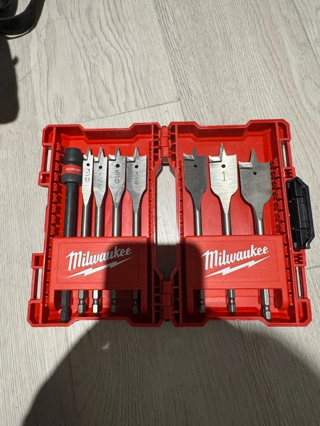 This Milwaukee spade bit set is ready to help you bore clean, fast holes in wood! The set is in new condition never used them. * Includes a variety of sizes for different applications. * Durable construction for long-lasting performance. * Comes in a convenient carrying case for easy storage and transport. If the ad is up, the item is available. Check out my other posts for electrician tools