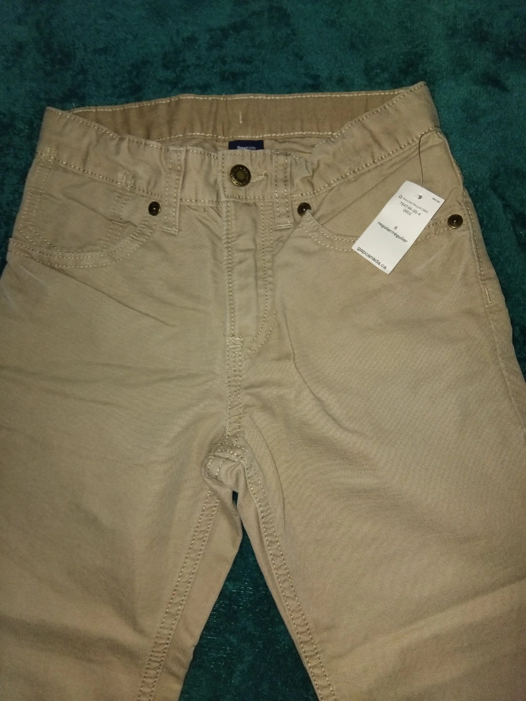 These are a brand new pair of Gap Kids pants, size 6. They are a regular fit and come in a nice beige colour. Perfect for your little one!