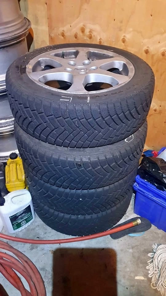 One wheel had a small crack but had repaired years ago. Mounted on very old (2017) 225/55R17 Pirelli Scorpion winter tires, best peeled and replaced.
