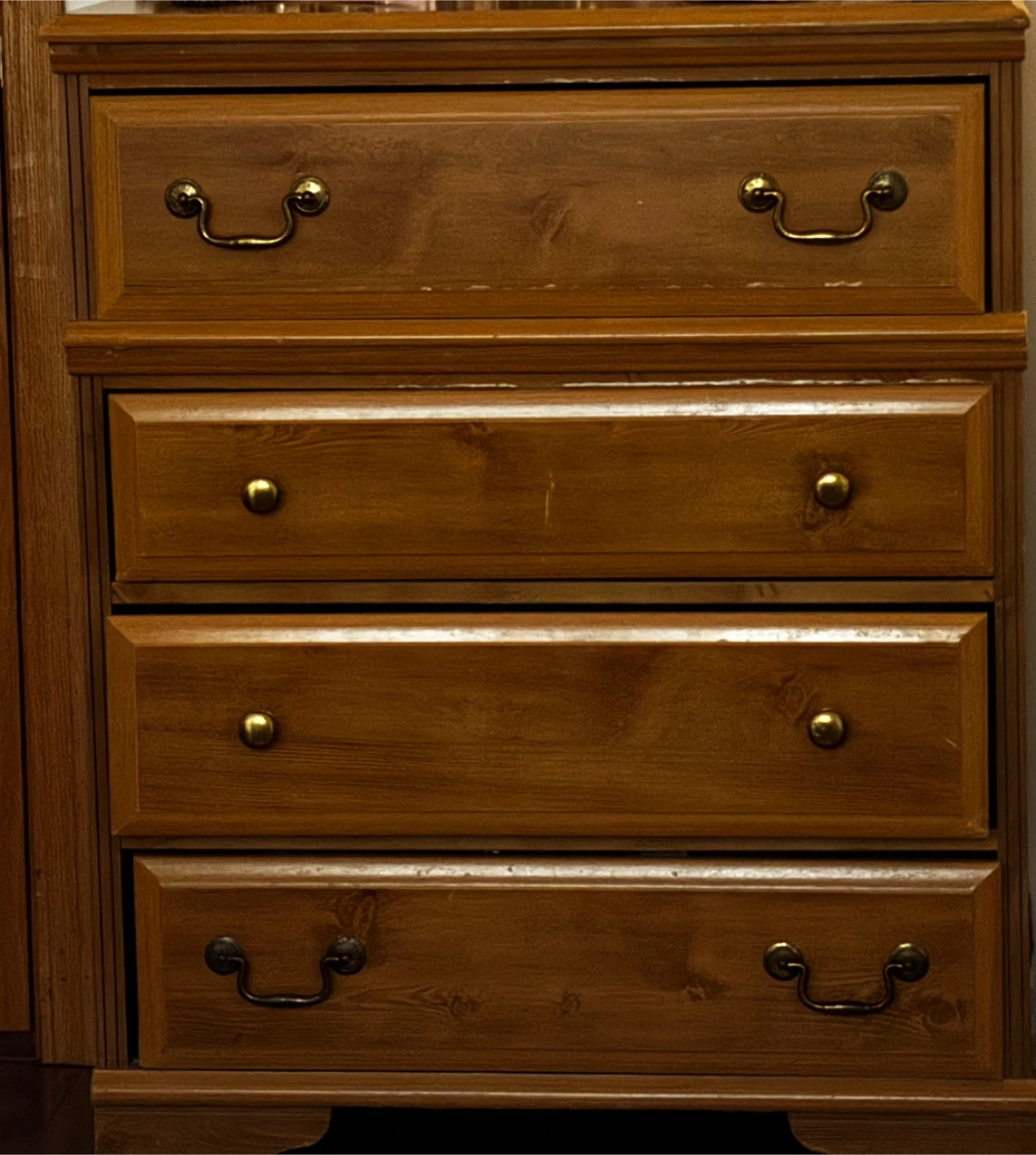 Selling my chestnut wood dresser a warm, classic piece with 4 spacious drawers and a sturdy overall build. It’s less than a year old and offers great storage for clothes, linens, or everyday items.