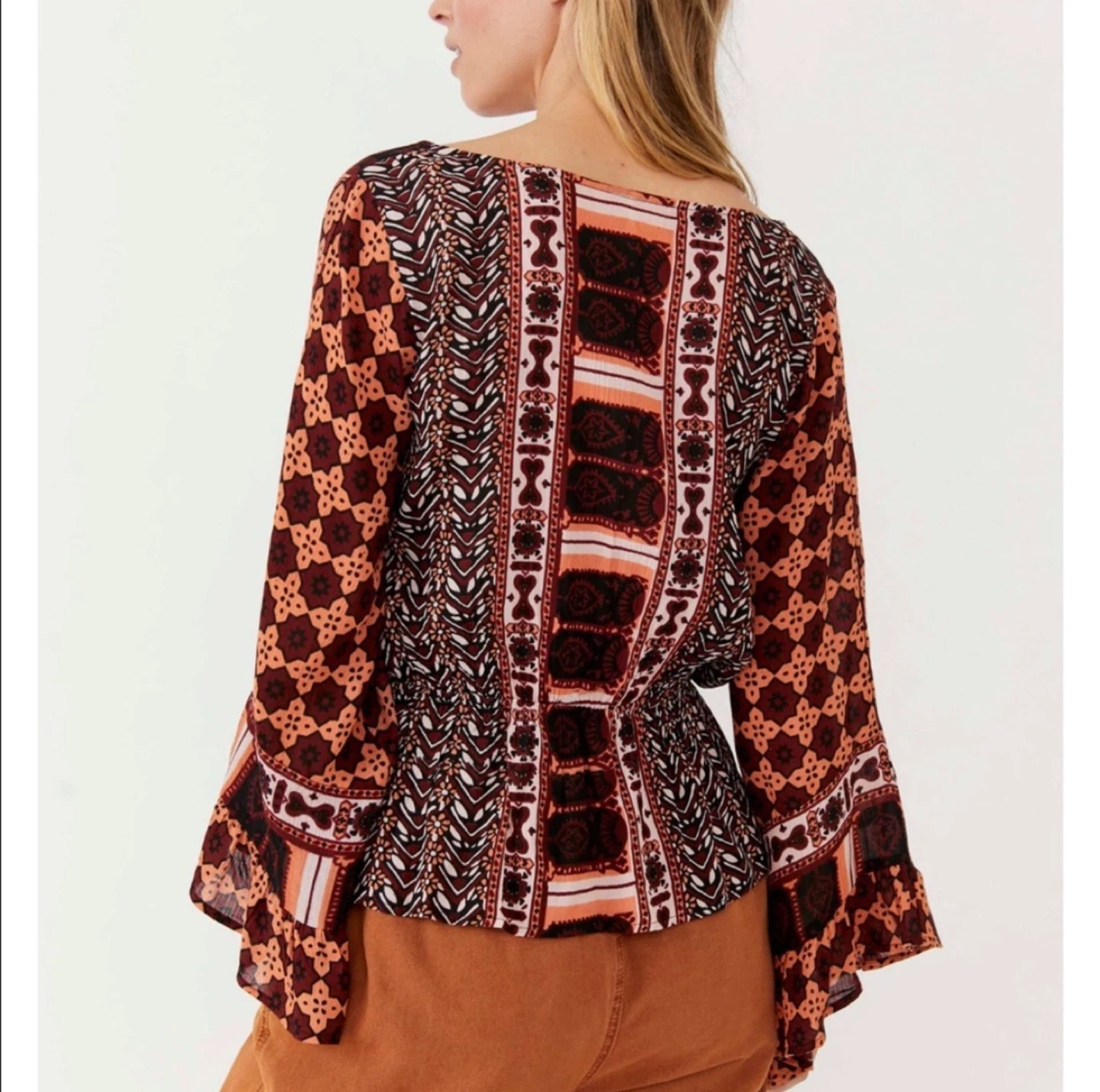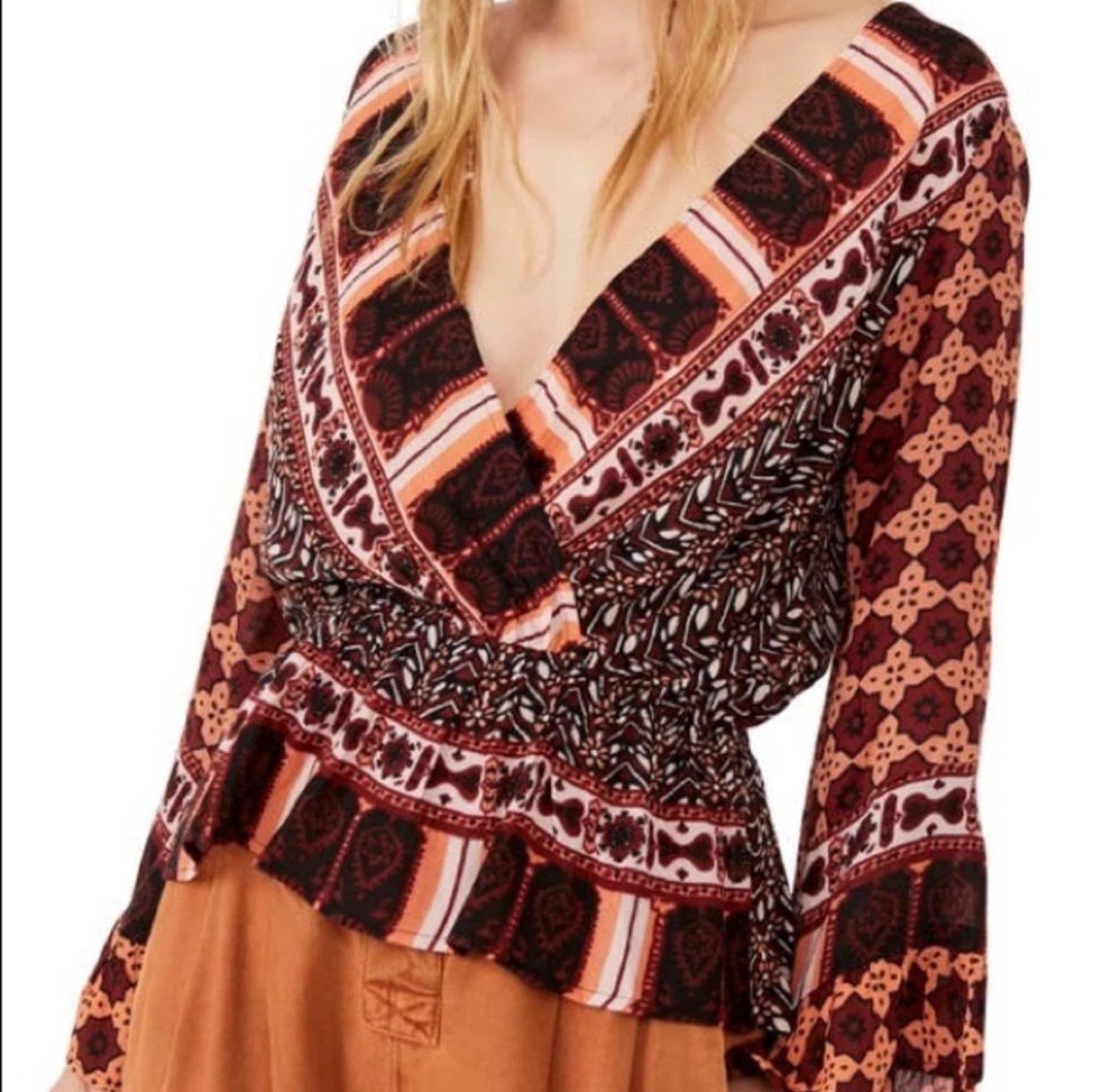 Free People Movement Rosalie Bell Sleeve Wrap Top Boho Blouse