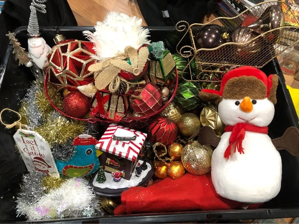 From good to like new condition, everything inside this tote is crazy for Christmas! I used to go hard at the holidays, but now the stuff is just taking up space. So it’s time for it to move on to someone else.