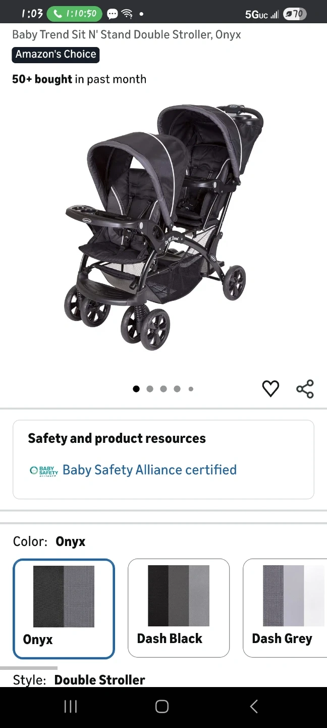 Baby Trend Sit N' Stand Double Stroller - Onyx