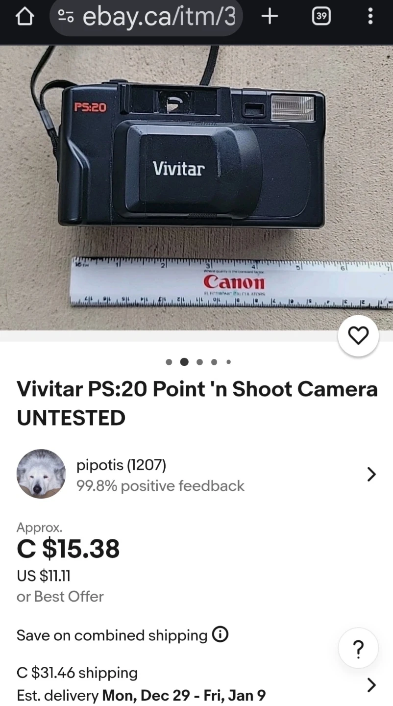 FREE Vivitar PS:20 point and shoot 35mm camera.