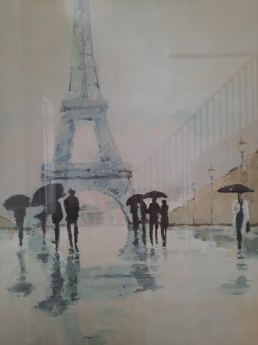 Bring a touch of Parisian charm to your home with this lovely framed picture of the Eiffel Tower It's in great condition, ready to hang and add a sophisticated touch to any room. The black frame complements the soft hues of the artwork, making it a versatile piece for various decor styles.