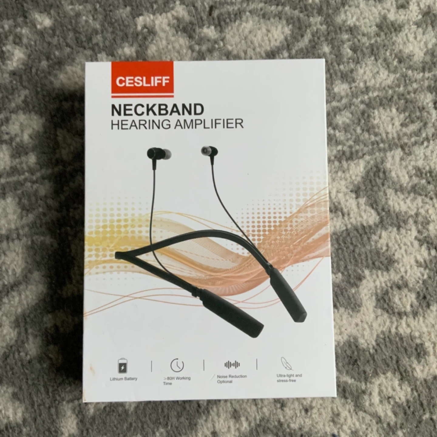 Selling a brand new Cesliff Neckband Hearing Amplifier! It comes in its original box and includes all components. Features include noise reduction and an ultra-light and stress-free design. It also has a long-lasting battery life of over 8 hours of working time.