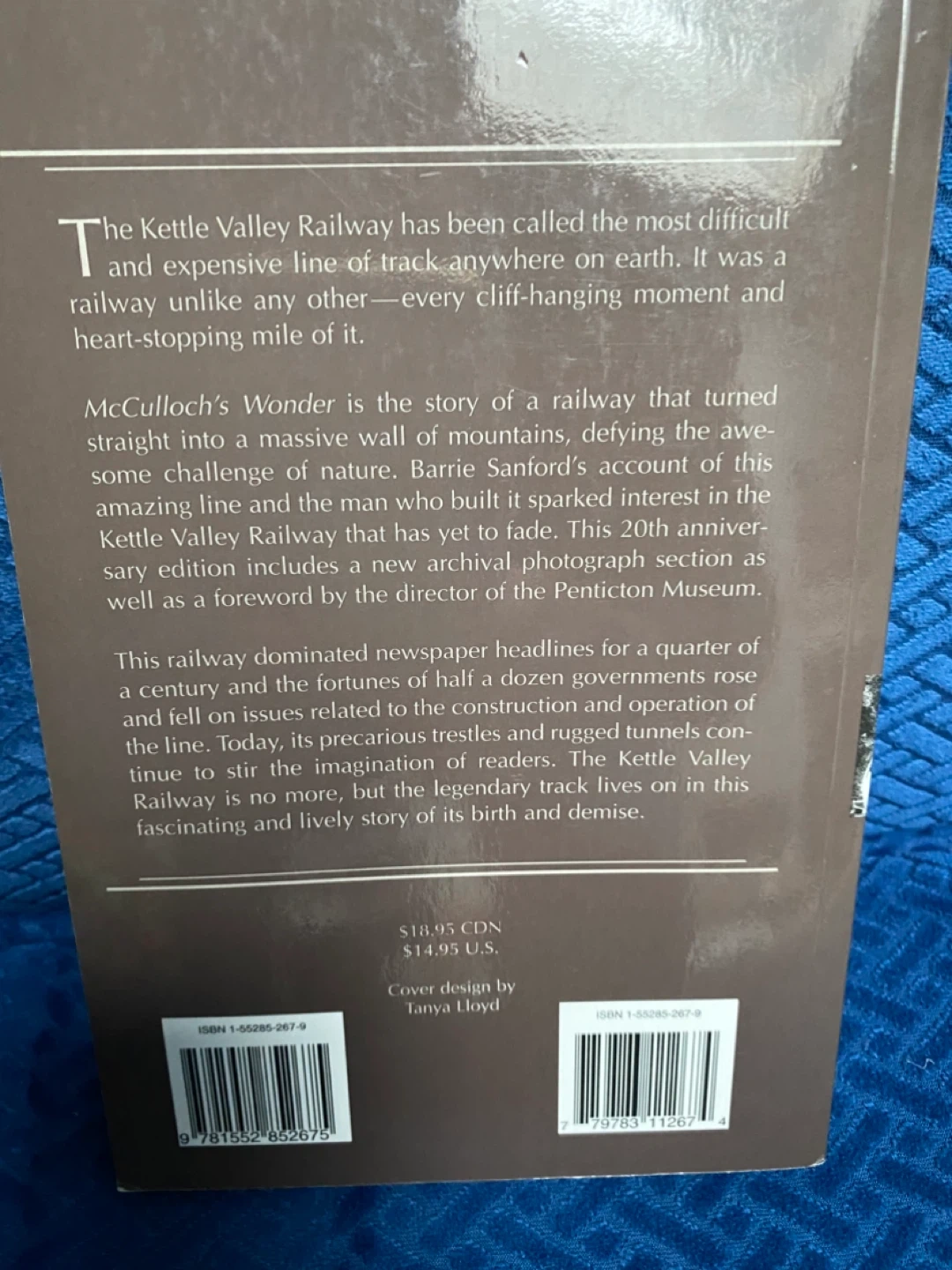 Selling McCulloch's Wonder: The Story of the Kettle Valley Railway by Barrie Sanford. This is the 20th Anniversary Edition, a B.C. Classic. The book explores the history of the Kettle Valley Railway and its impact. Cover design by Tanya Lloyd. Originally bought for $18.95 CDN.
