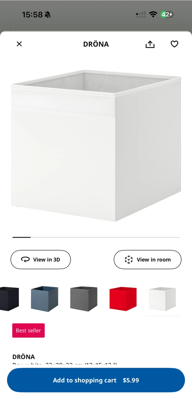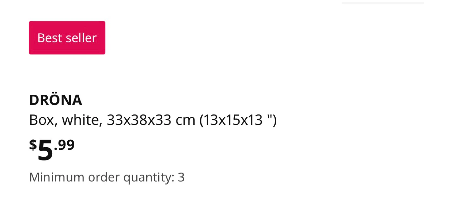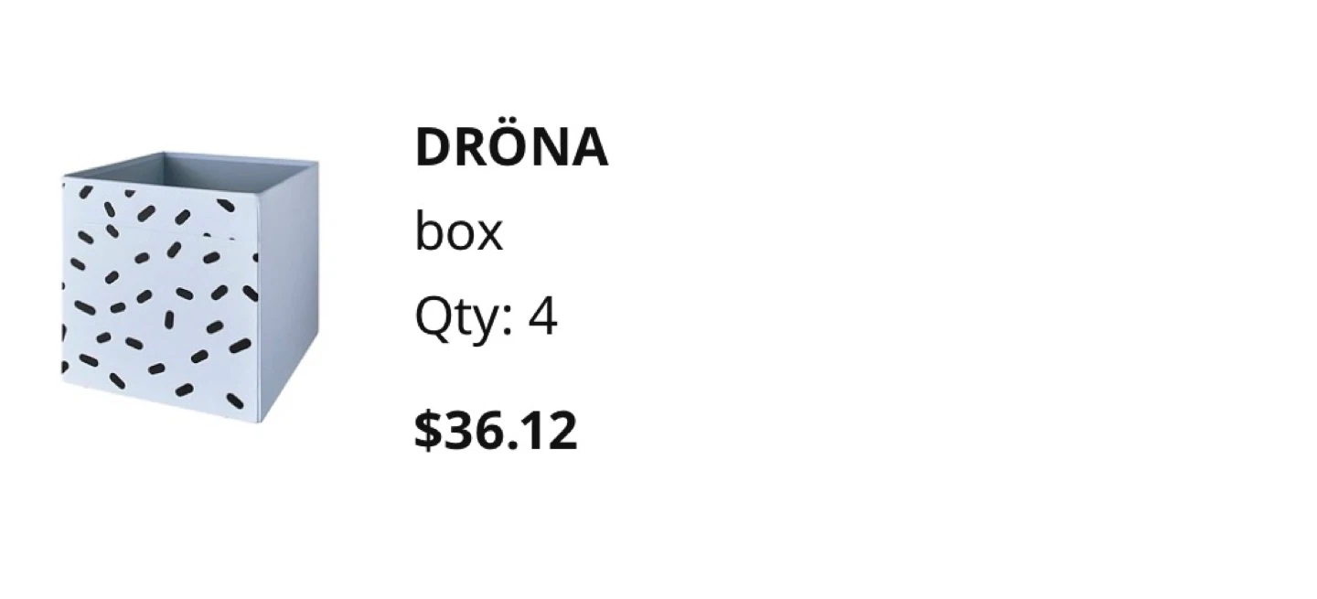 1 / 41 / 4Buy & SellIKEA DRÖNA Box - 2 white and 4 blueIKEA DRÖNA Box - 2 white and 4 blue$10Three white IKEA DRÖNA box In clean and great condition, recently purchased 2 white for $7 4 blue for $24 Altogether for $30ConditionLike newWHERE TO MEET99 Broadway AveView MapSELLERverifiedMoonChurch and Wellesley17112 reviews2 chats·5 favorites·97 viewsSEND CHAT TO SELLERHi Moon! I’m interested in your listing.Hi Moon! I’m interested in your listing.Get the Karrot app to chatSign In to chat