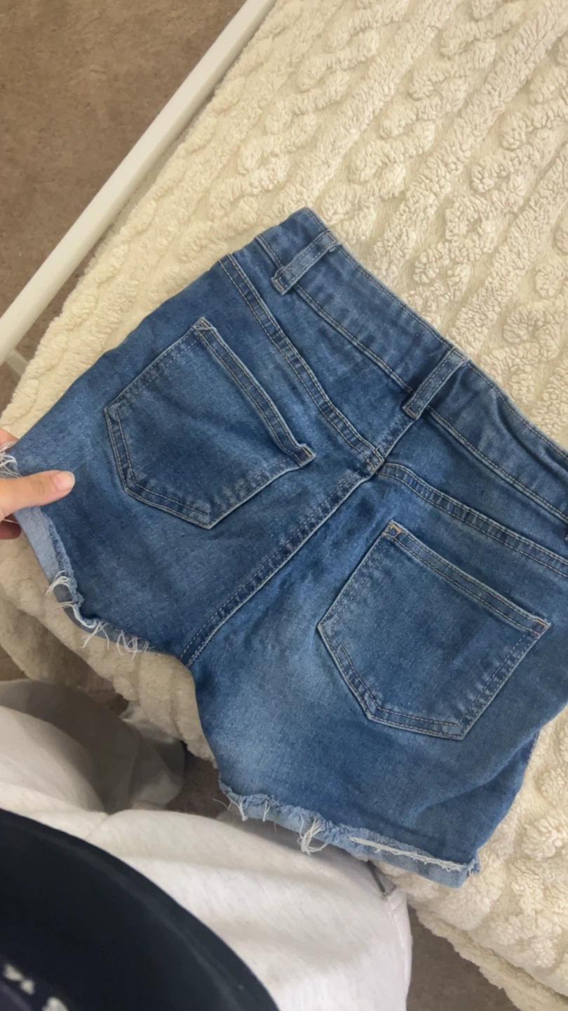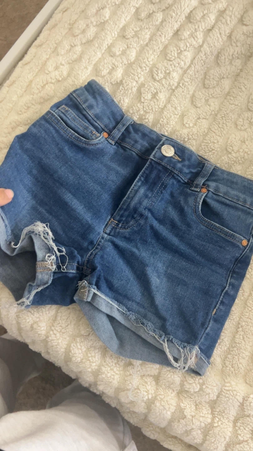 Selling a pair of Urban Shortie denim shorts in kids size 10. They're in great condition and ready for a new owner! The shorts are a classic denim blue with a slightly distressed hem.