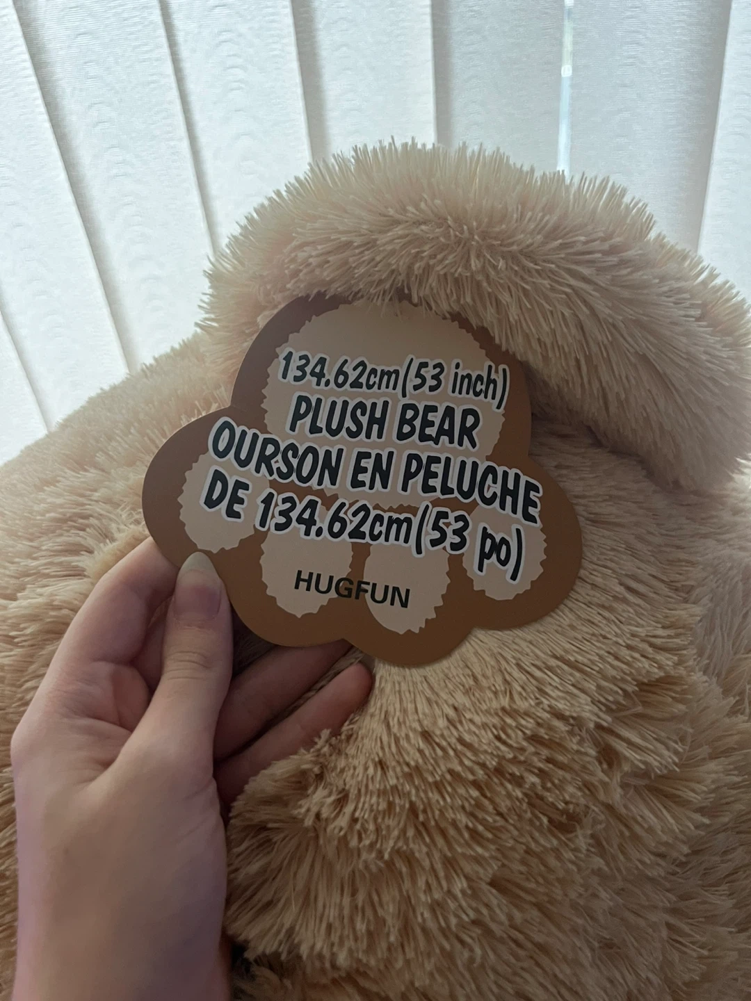Selling a Hugfun plush bear! It's super soft and measures 53 inches (134.62cm). It's in great condition and ready to be cuddled