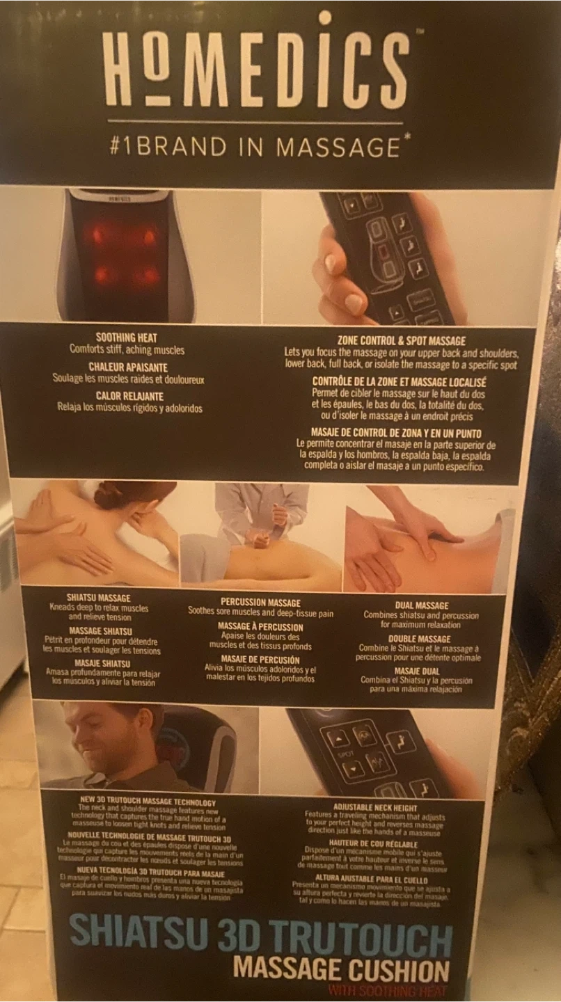 Selling a HoMedics Shiatsu 3D TruTouch massage cushion with soothing heat! The box includes the remote control. It features: