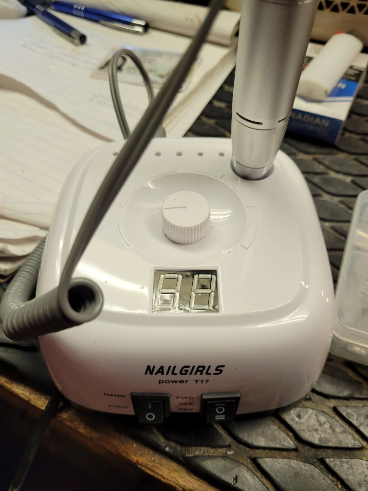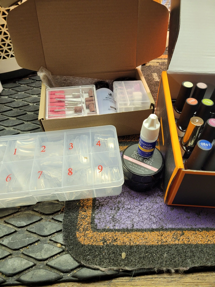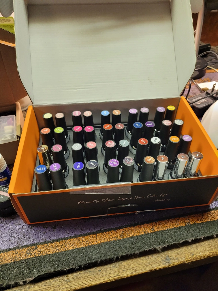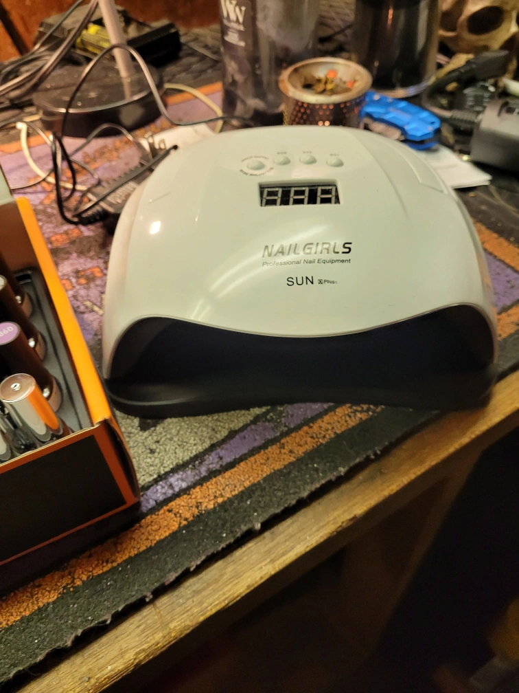 Selling a complete nail set including Nailgirls nail polishes, a Nailgirls SUN x Plus UV LED nail lamp, and a Nailgirls Power T17 nail drill. All you need to create beautiful nails at home! Comes with a variety of drill bits and nail tips.