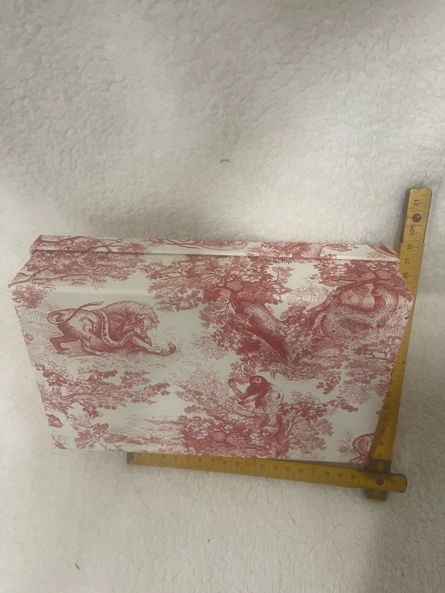 This Dior box, with its charming toile de Jouy pattern in red and white, is perfect for storing keepsakes or adding a touch of luxury to your decor. It's in good condition, ready to bring a bit of Parisian flair to your space. It's so cute, you might just want to give it a home or give it as a gift!