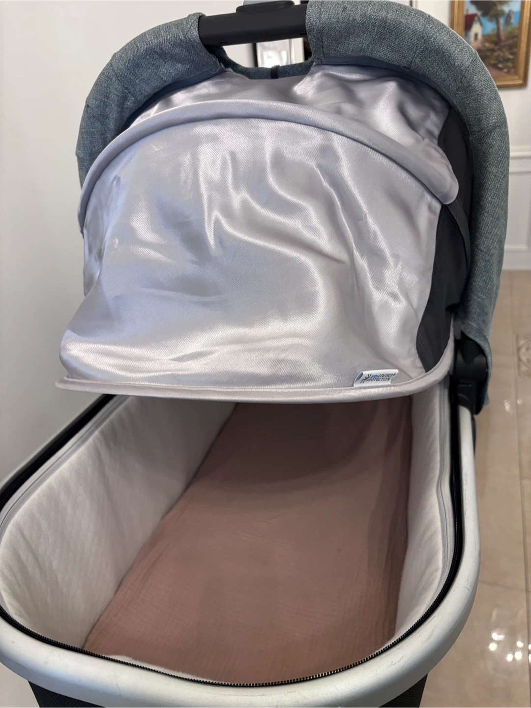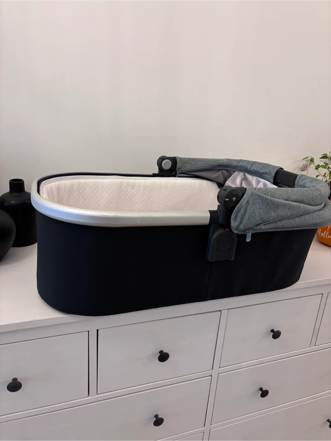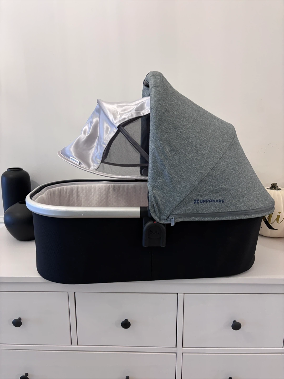 Selling a gently used UPPAbaby bassinet in great condition. It's black and grey and comes with a sunshade. Perfect for newborns!