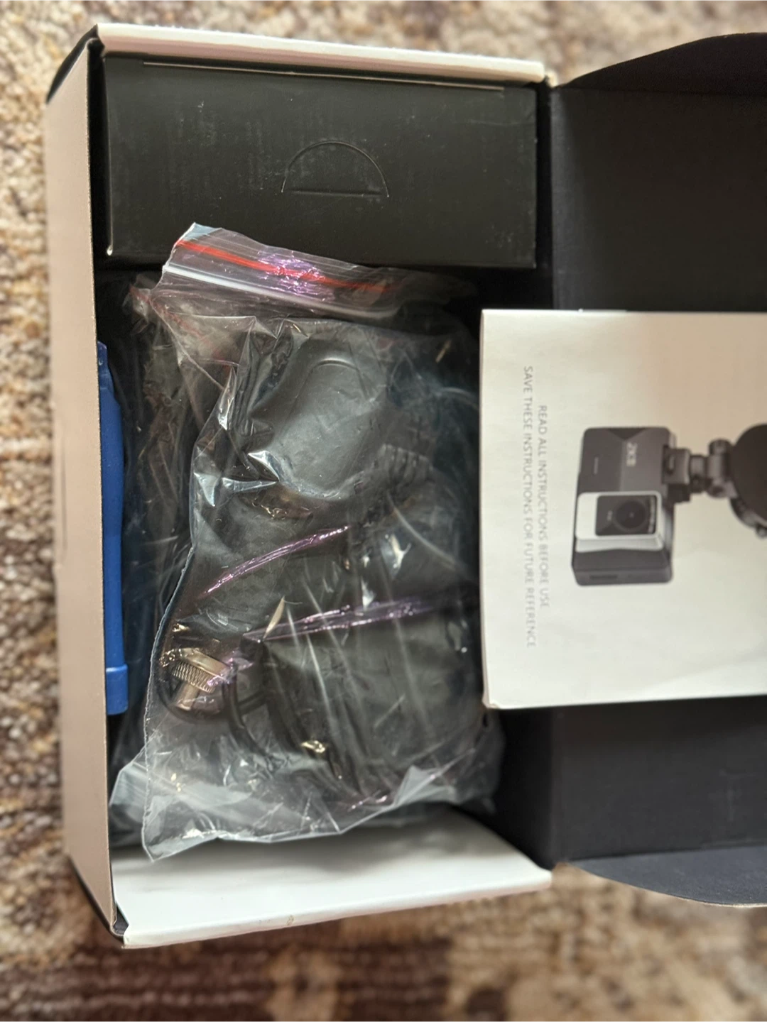 Selling a SUVCON Dual-View Smart Dash Cam. It captures in 1440P FHD and has a 170° Wide Angle lens. It also features a 2" LCD Screen and Wi-Fi connectivity. The box includes all components and accessories.