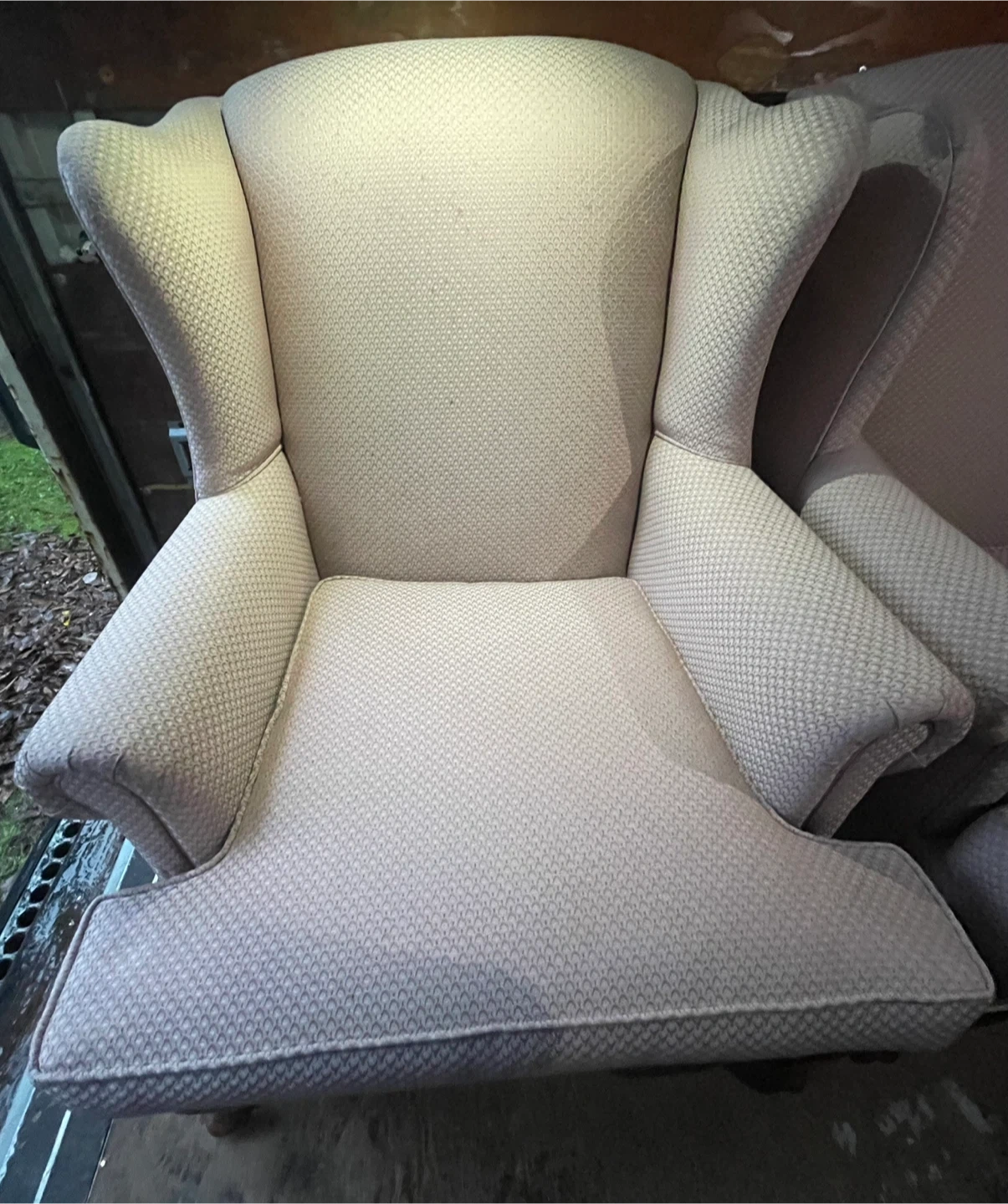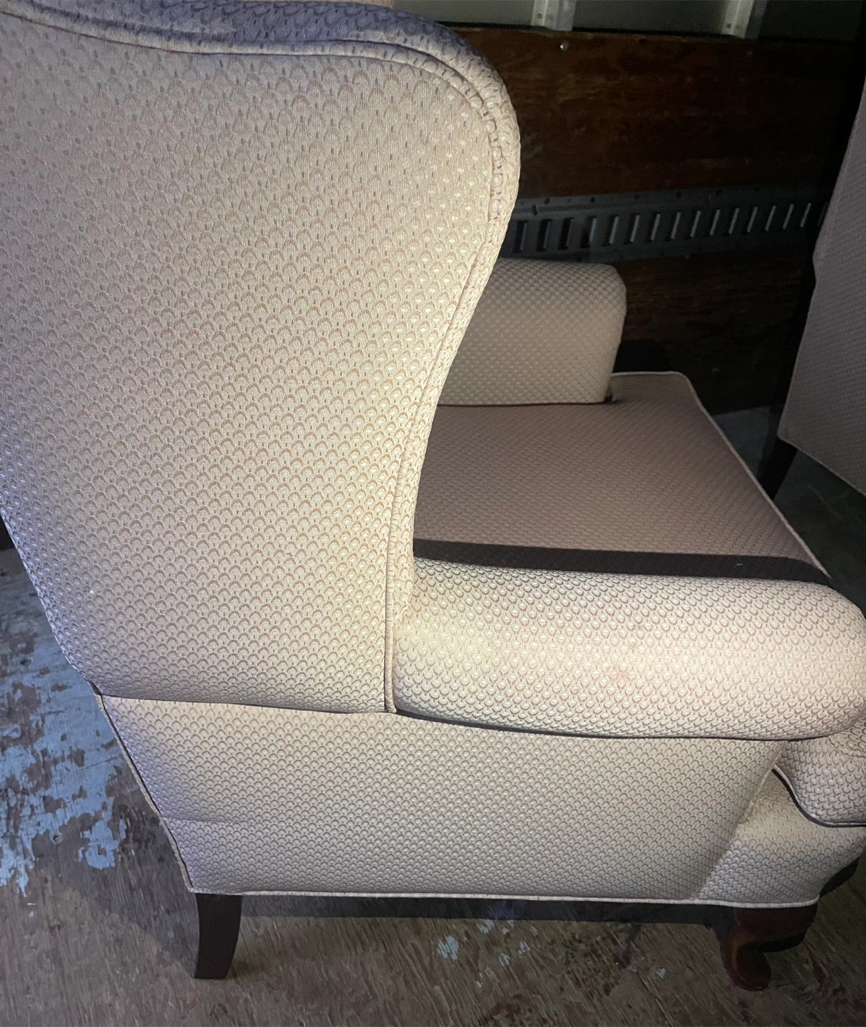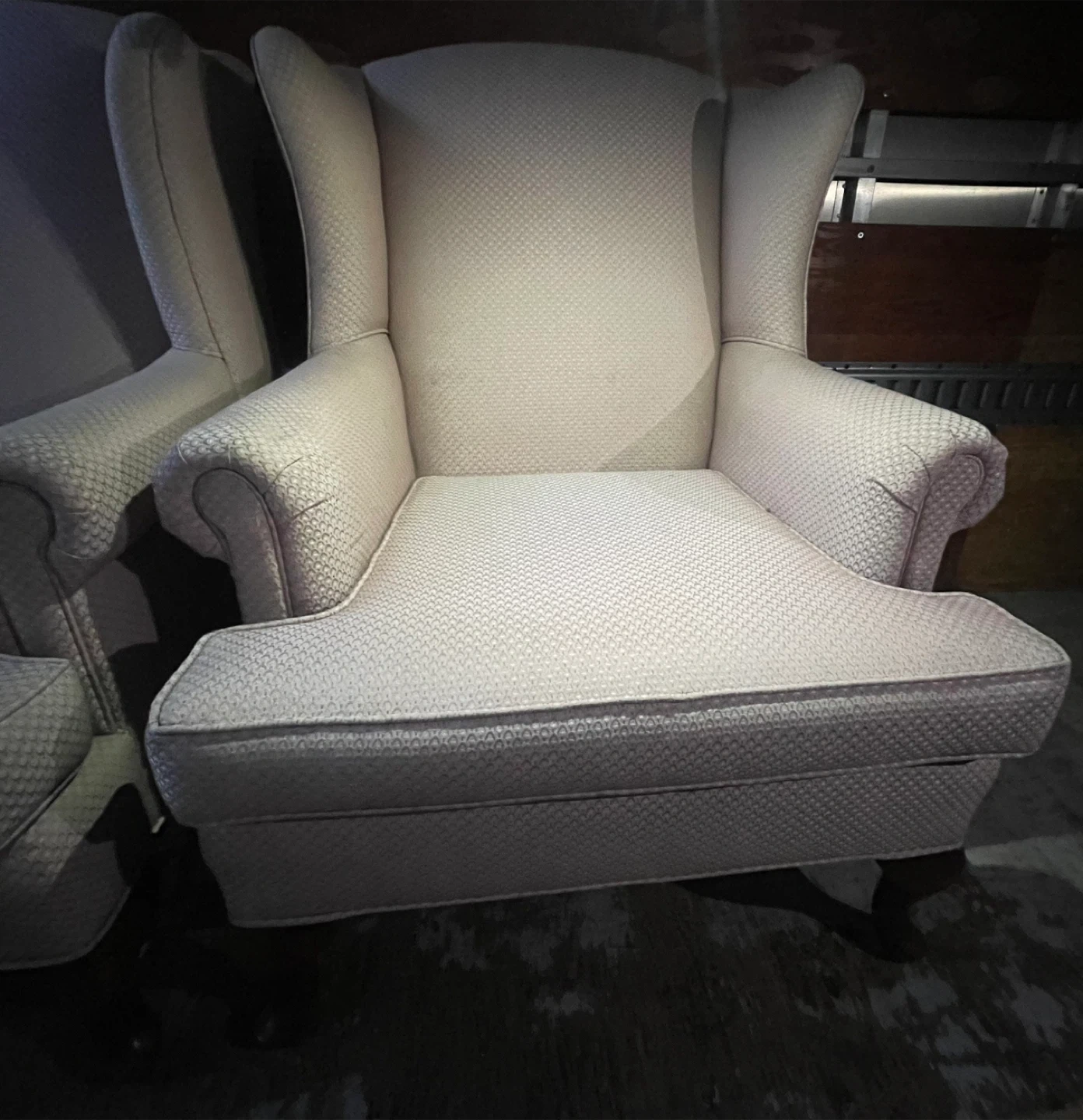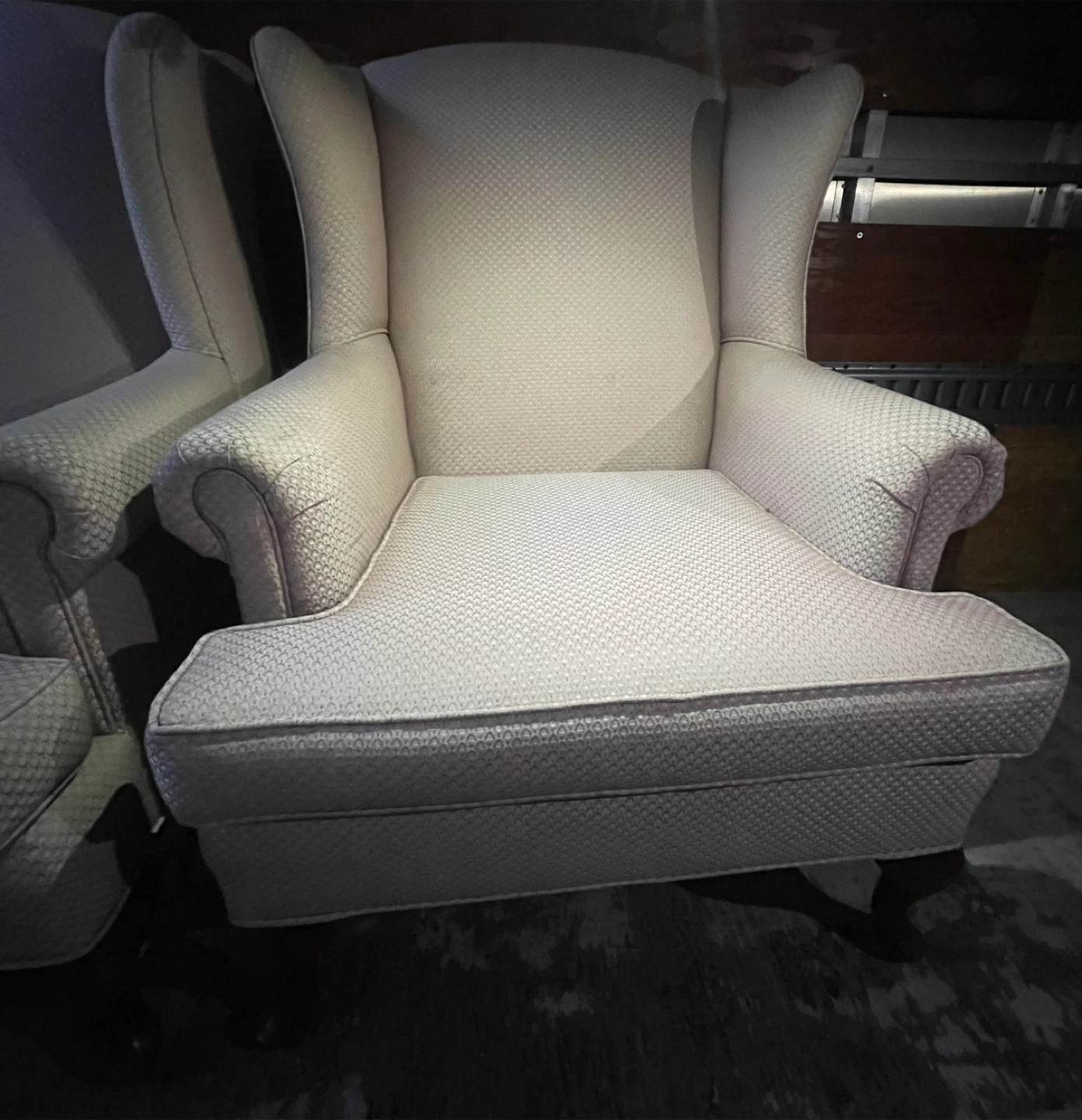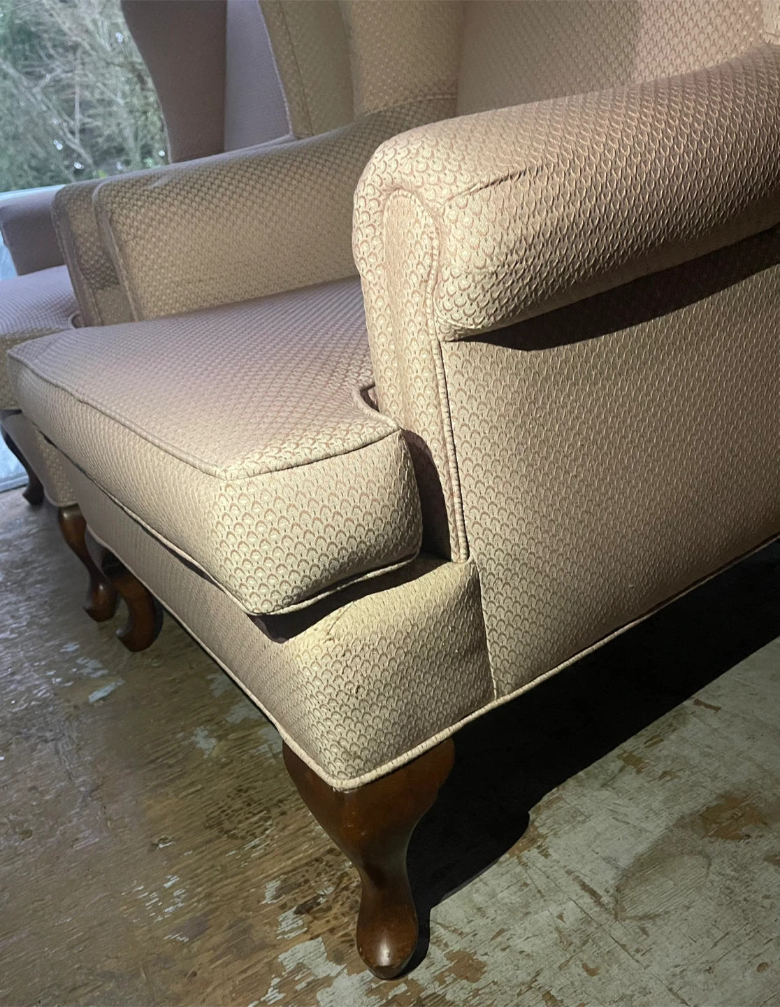 Selling 2 comfy wingback armchairs! It's a light pink/ salmon, colour and in great condition. Perfect for adding a touch of elegance to any room. Selling both as a set $100 each.. I will shrink wrap them to keep them clean. No scratches, tears or damage whatsoever., kept very clean from a clean household. Condition is truly like new.. comes with new arm cover caps.