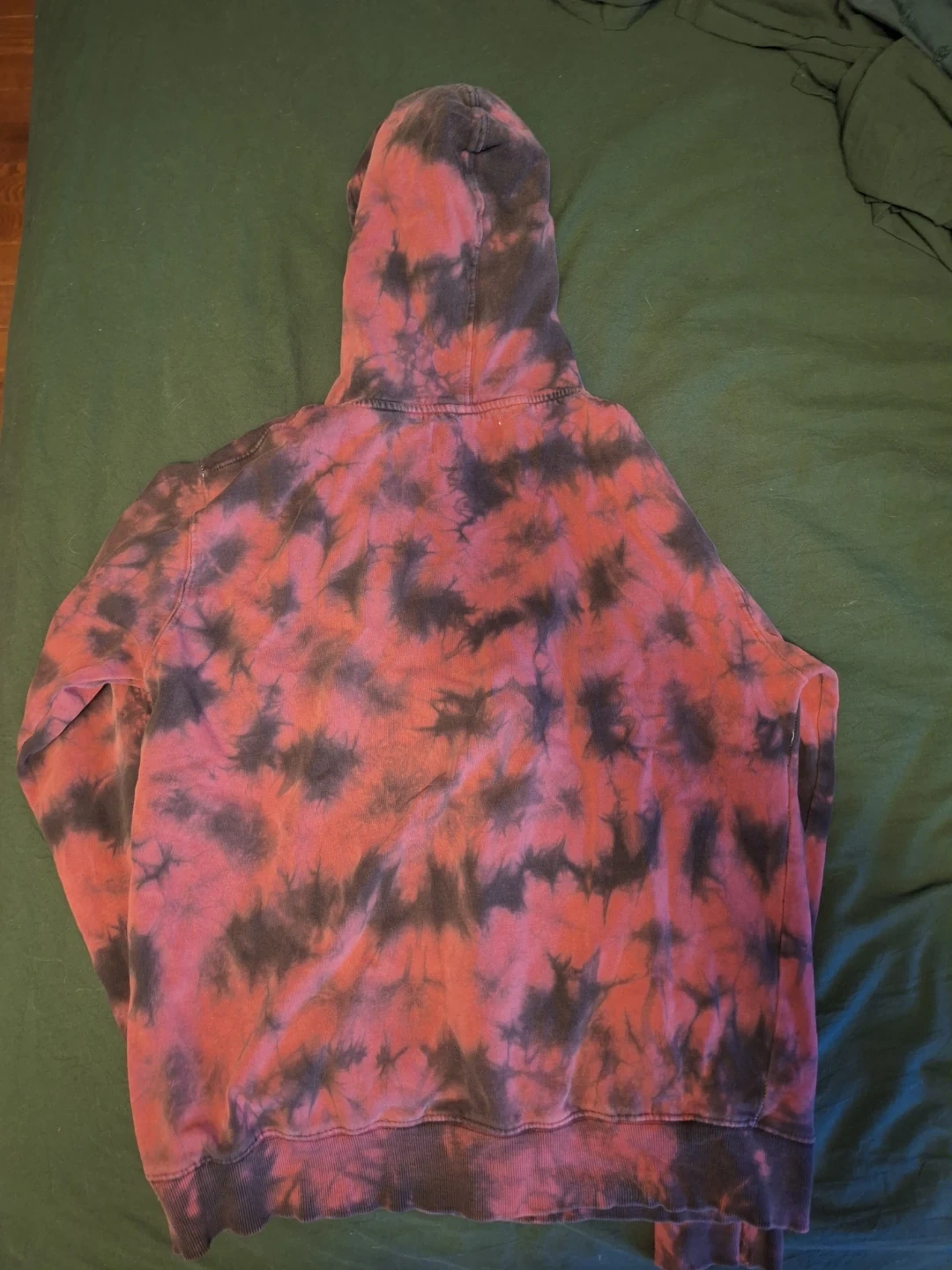 Selling a cool Urban Heritage hoodie with a unique tie-dye pattern! It's a size medium and features the word 'REALITY' on the front and 'EXISTENCE' on the sleeve.