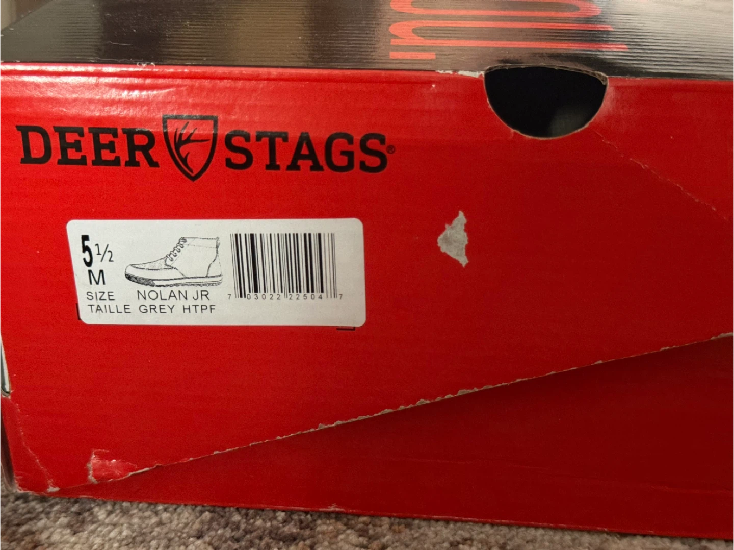 Selling a pair of Deer Stags Nolan Jr. boots in size 5.5. They are a stylish grey color and come with the original box