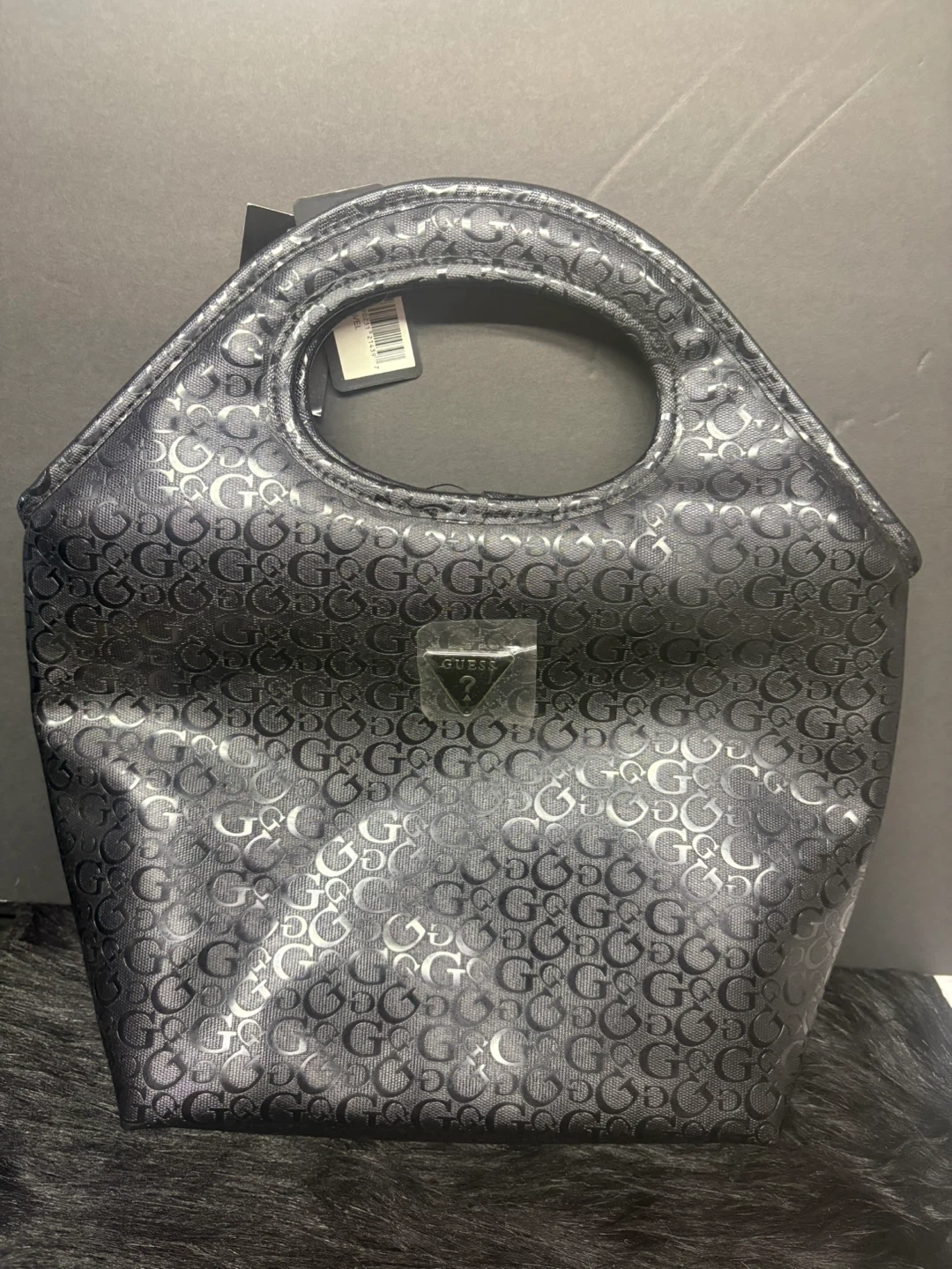 Selling a cute black Guess tote bag with a unique all-over 'G' pattern! It's in great condition and perfect for carrying your essentials in style