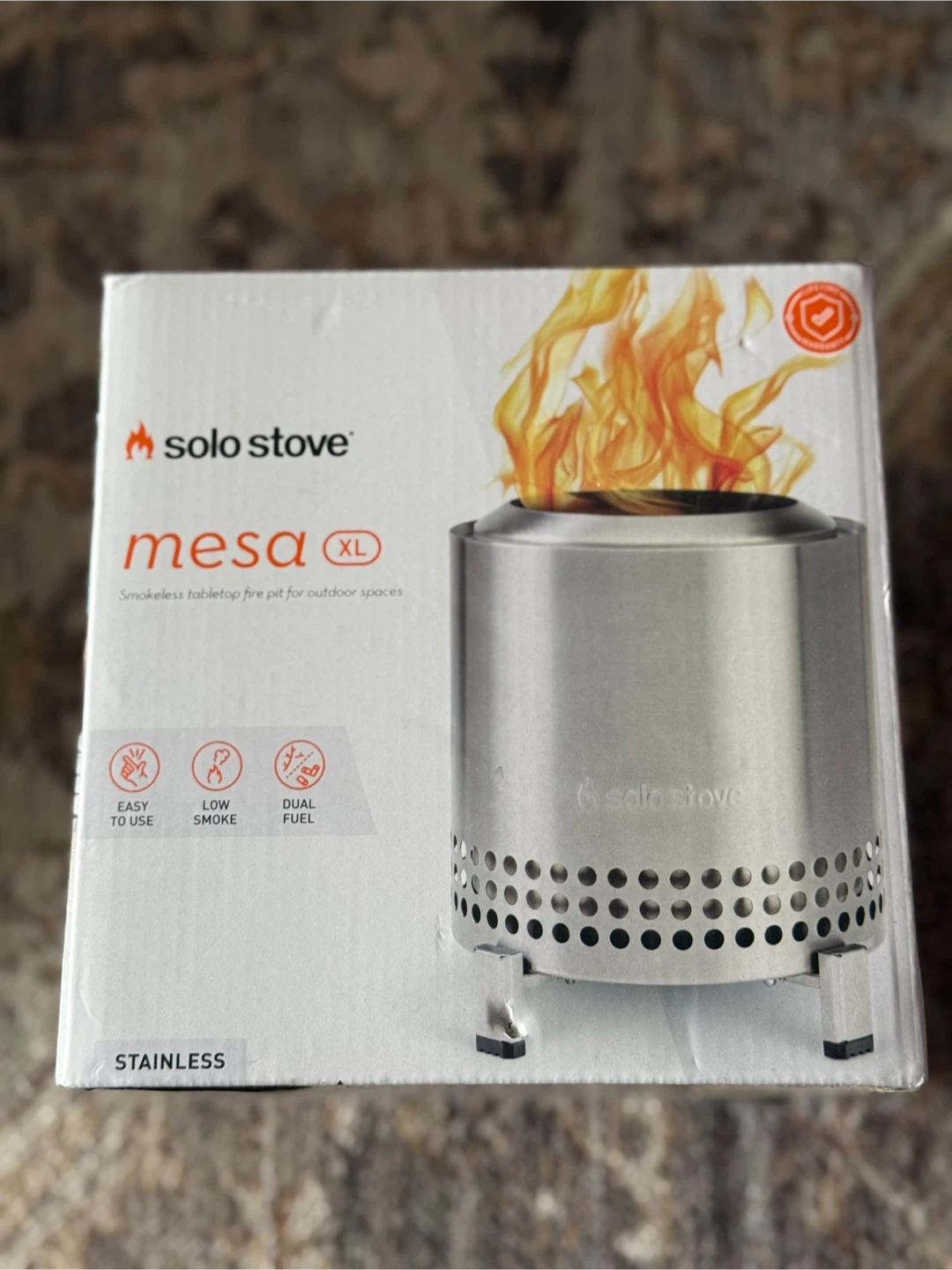 I'm selling a brand new Solo Stove Mesa XL! It's a smokeless tabletop fire pit perfect for outdoor spaces.