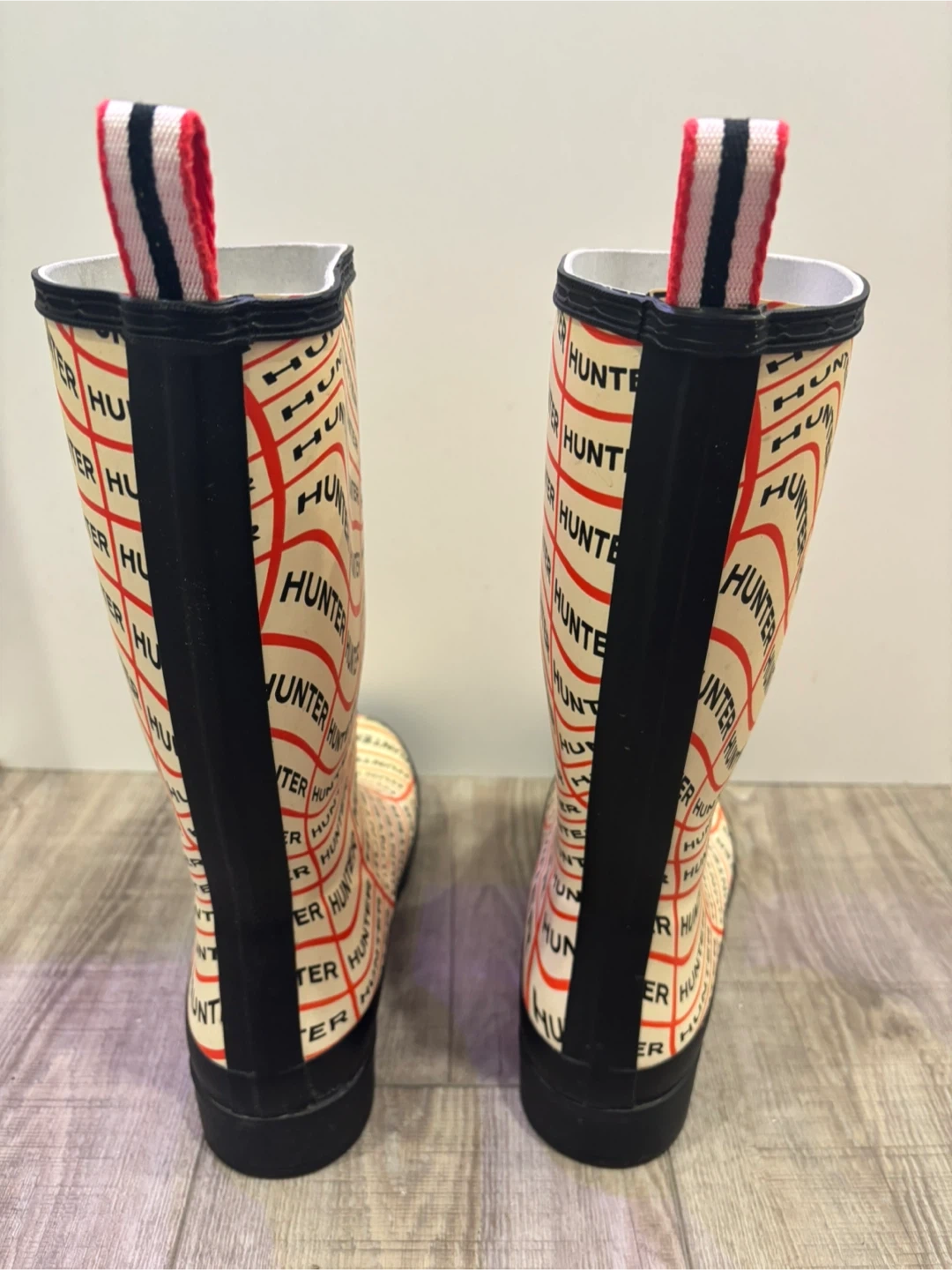 Hunter rain boots in a fun, eye-catching print! These are a size 7 and in great condition. Perfect for rainy days and keeping your feet dry in style
