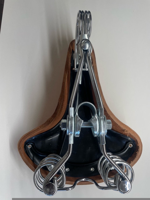 New saddle. Price firm. Pickup can be arranged in Brampton, Mississauga, Oakville, Burlington, Hamilton. The saddle is made of thick cowhide material and very durable, with several rivets to fix the edge. CLASSIC RETRO DESIGN - This 1890s bicycle saddle is made of thick cowhide leather, suitable for all Touring Bike & Low riders. NATURAL VENTILATION - Three holes in the saddle surface provide natural ventilation. WITH 3 SPRINGS - Double screw spring back / 1 nose spring front. Rails are chrome-plated, front coil spring. SADDLE DEMENSION - Seat clamp for 7/8 " straight seat post, the bicycle saddle size: length x width 29 x 22 cm.