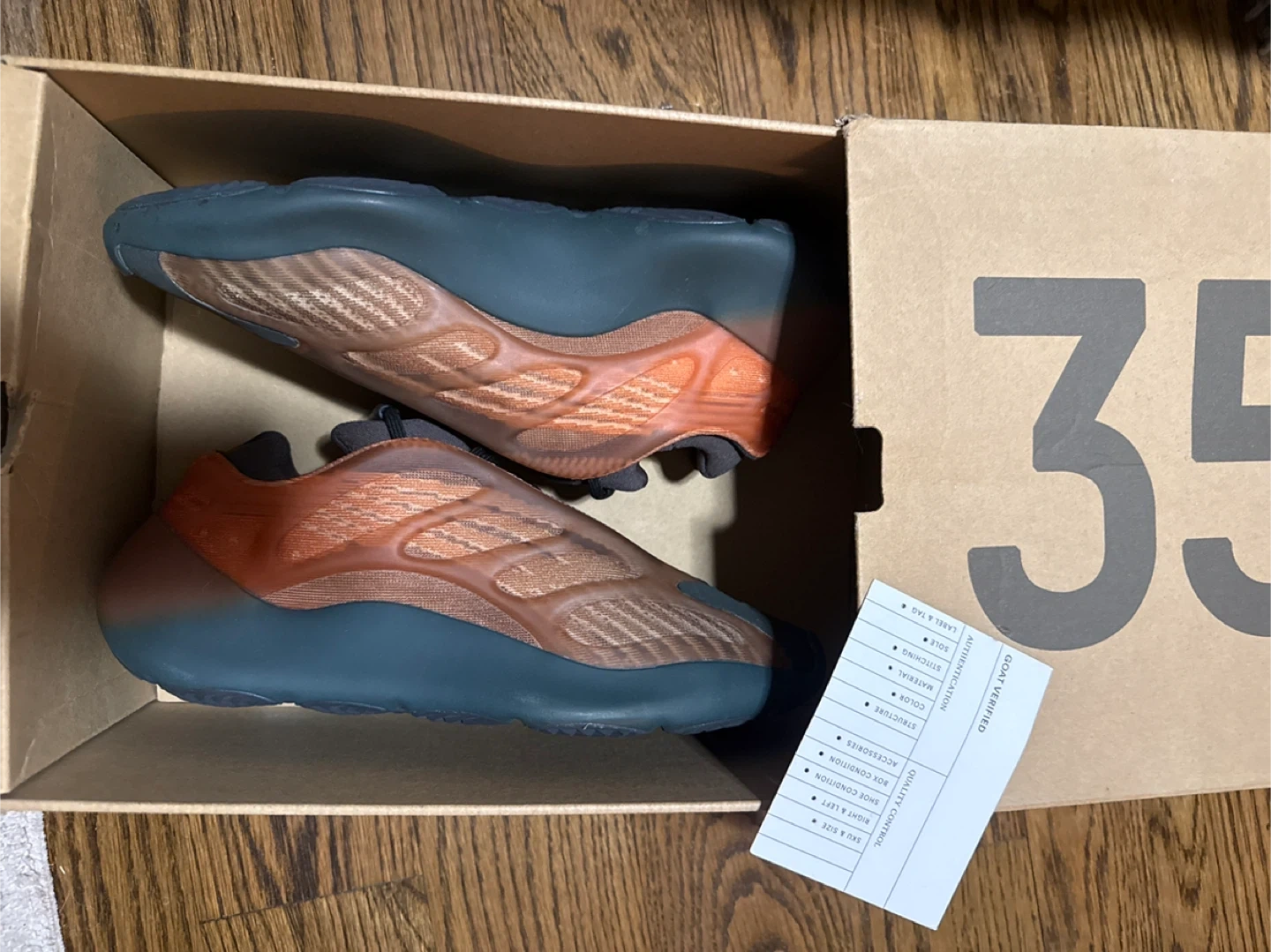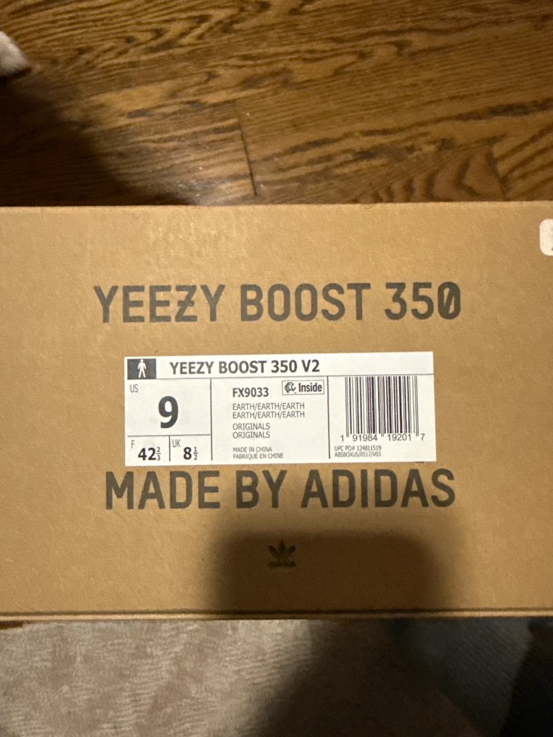Selling a pair of Adidas Yeezy Boost 350 V2 in the Earth colorway, size 9. They come with the original box and a GOAT Verified card. Great for any sneaker enthusiast!