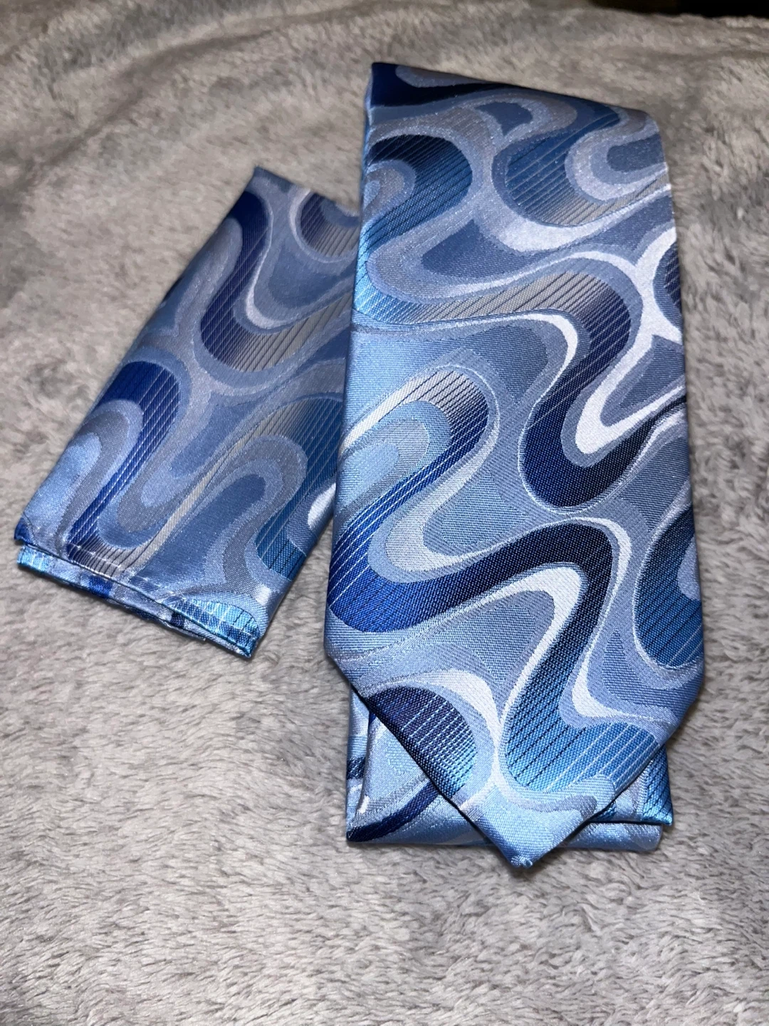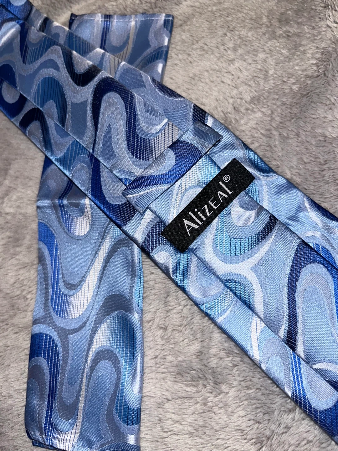 Brand new Alizeal tie and pocket square set! The tie features a cool blue pattern. Comes in original packaging.