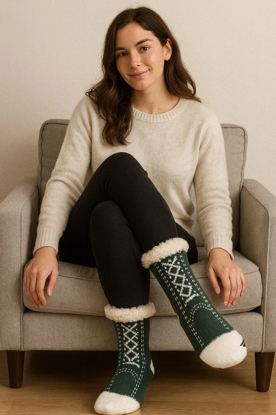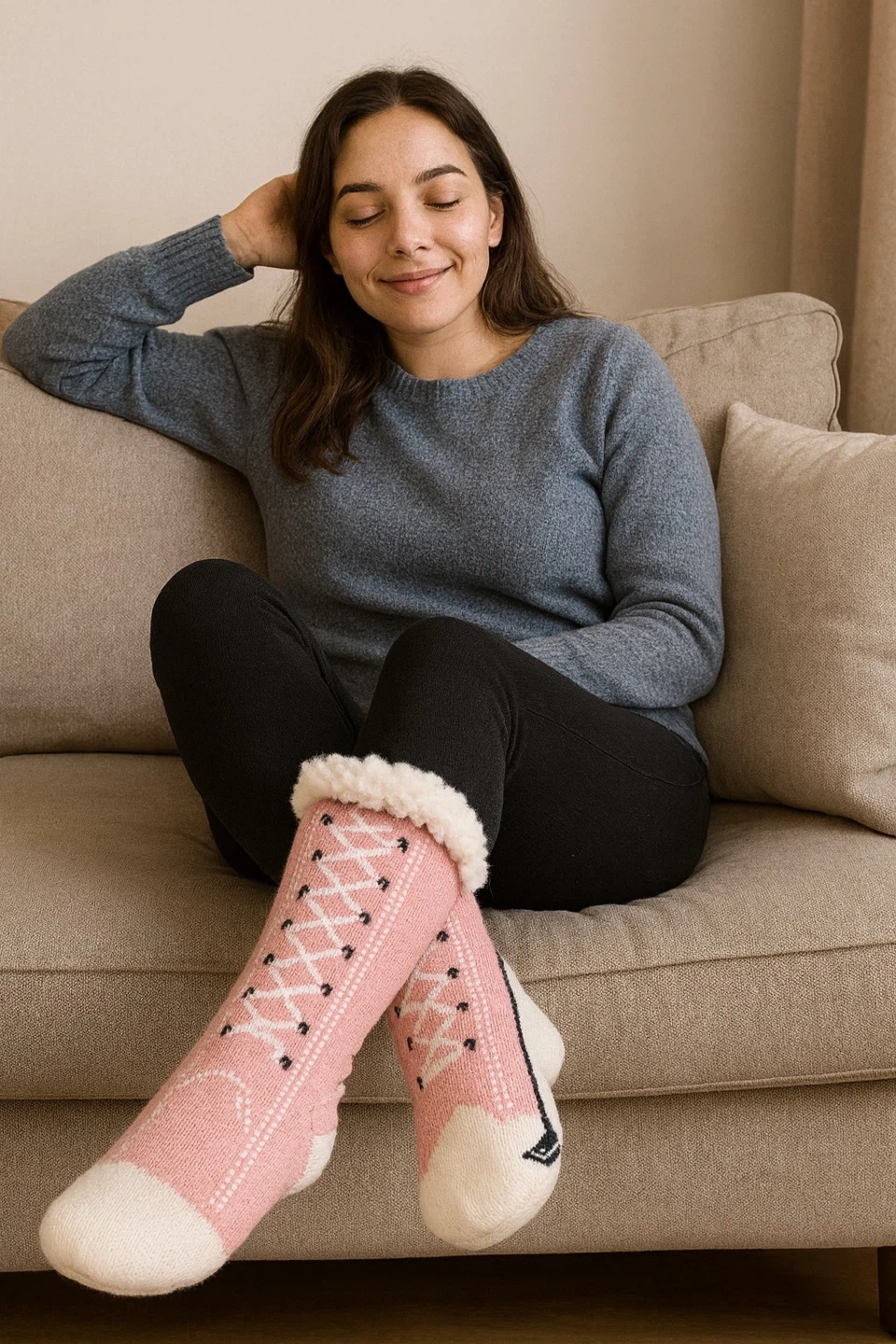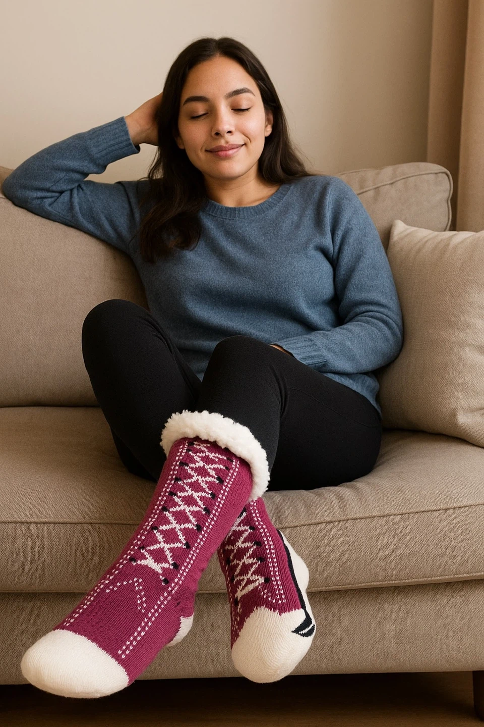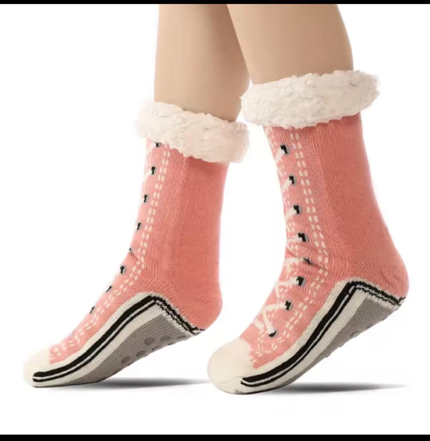Get ready for winter with these cozy sherpa-lined slipper socks! They come in various colors and designs. Perfect for keeping your feet warm and comfortable around the house