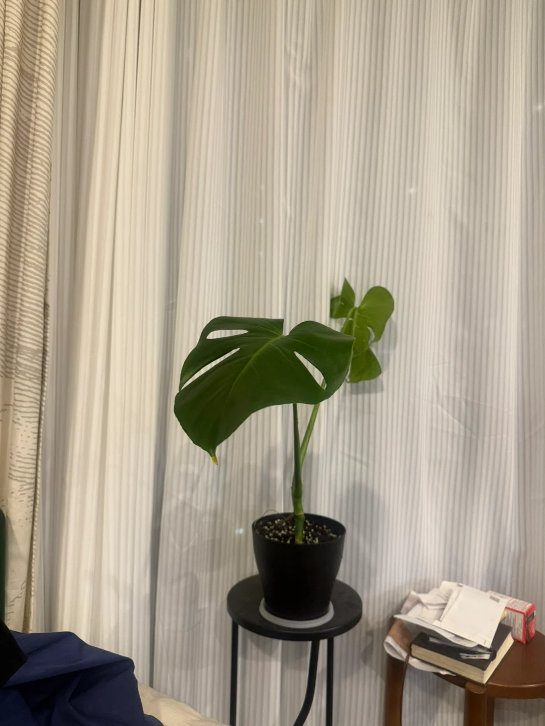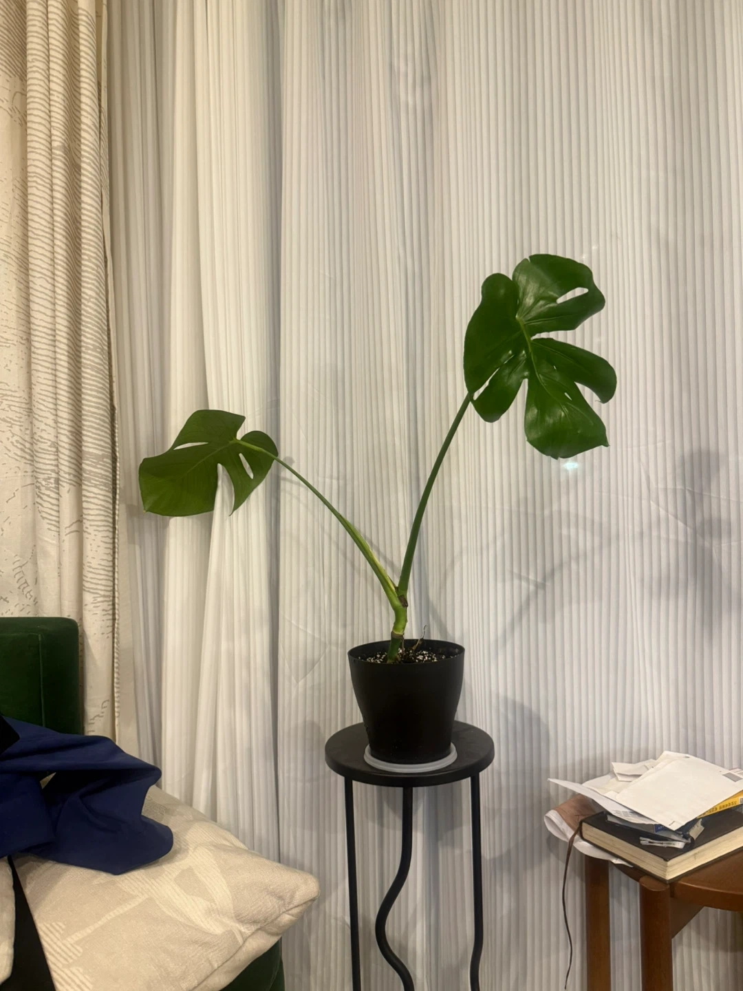 Selling a healthy monstera plant. It's potted in a simple 5” black pot and ready to brighten up your space! The plant has beautiful, characteristic splits in its leaves.