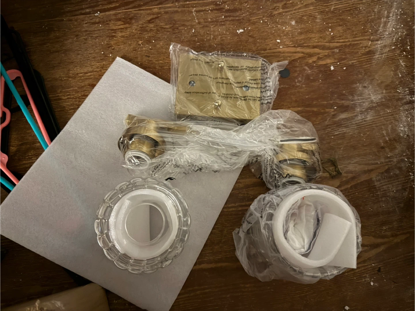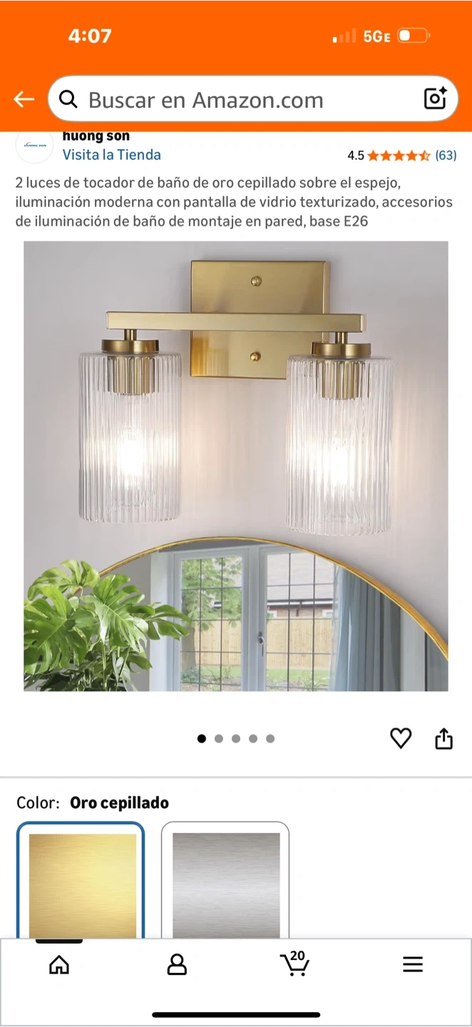 Selling a Huong Son 2-light bathroom vanity light in brushed gold. It features a modern design with textured glass shades and is suitable for wall mounting with an E26 base. It's brand new and still in its original packaging!
