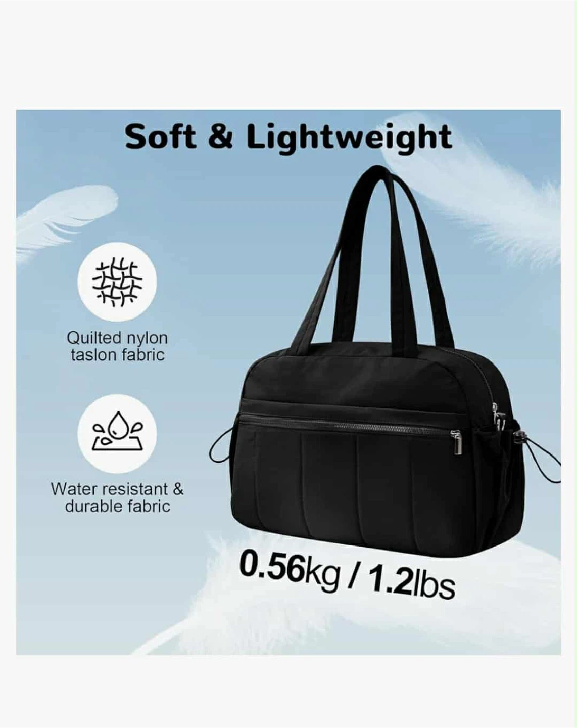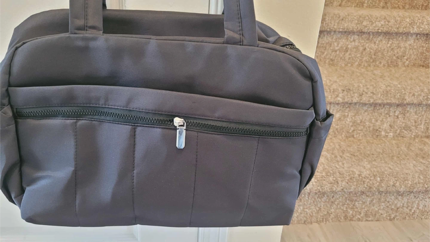 Selling a black gym bag made with quilted nylon taslon fabric! It's lightweight and easy to carry around.