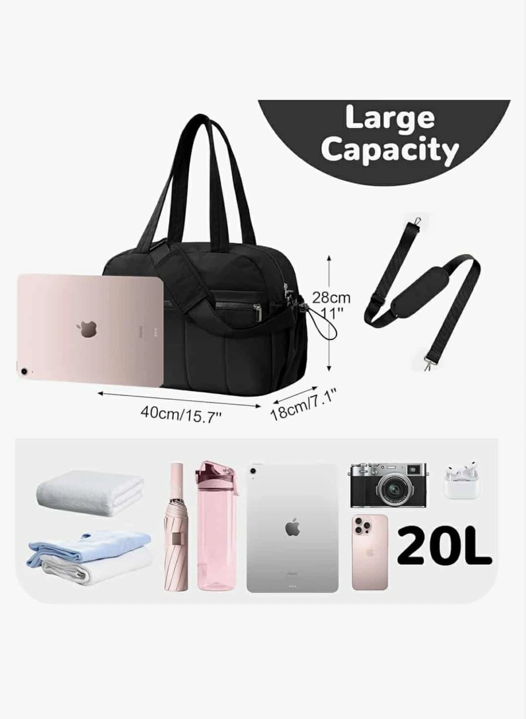 - Dimensions: 40cm/15.7" x 28cm/11" x 18cm/7.1"