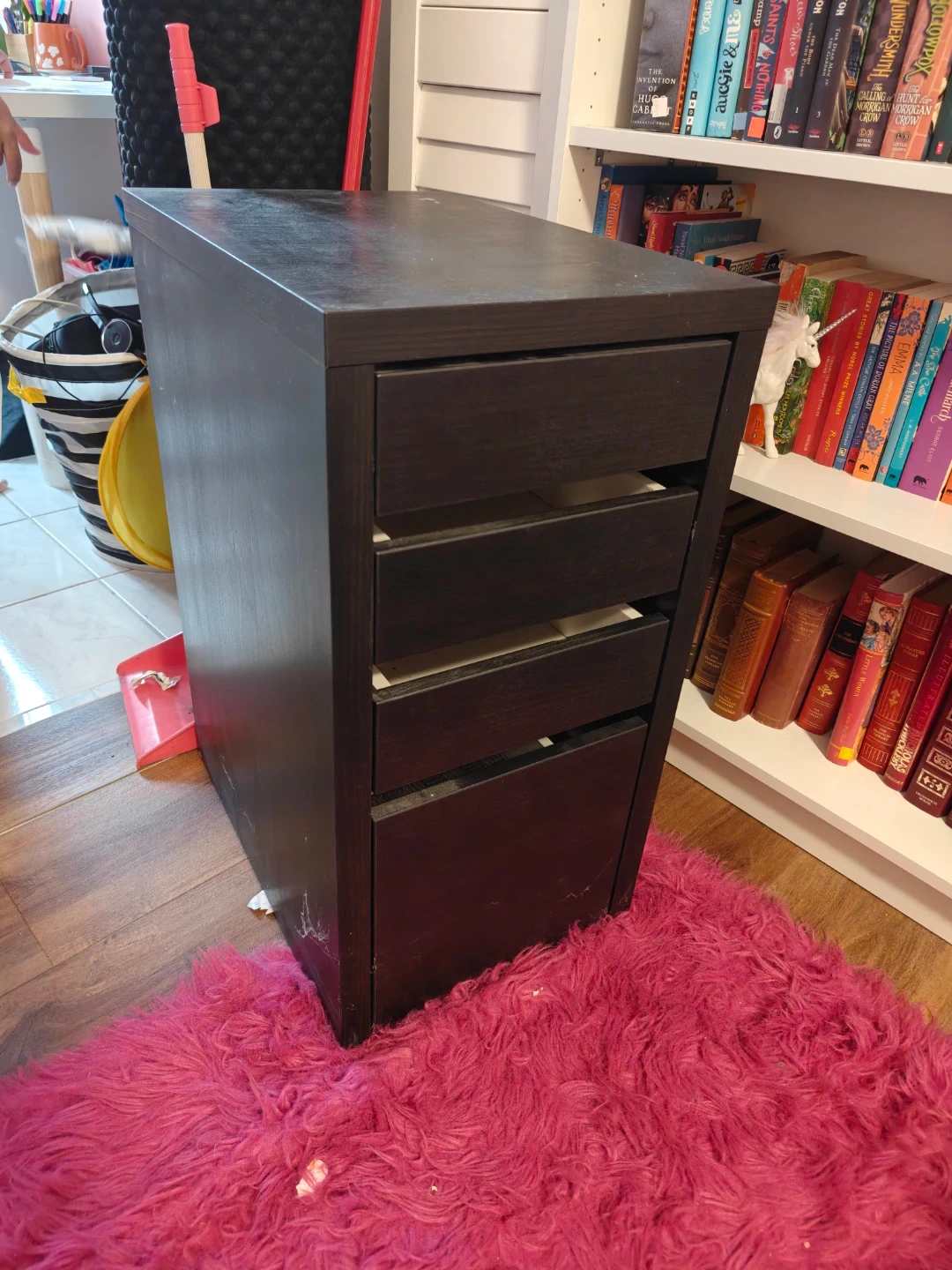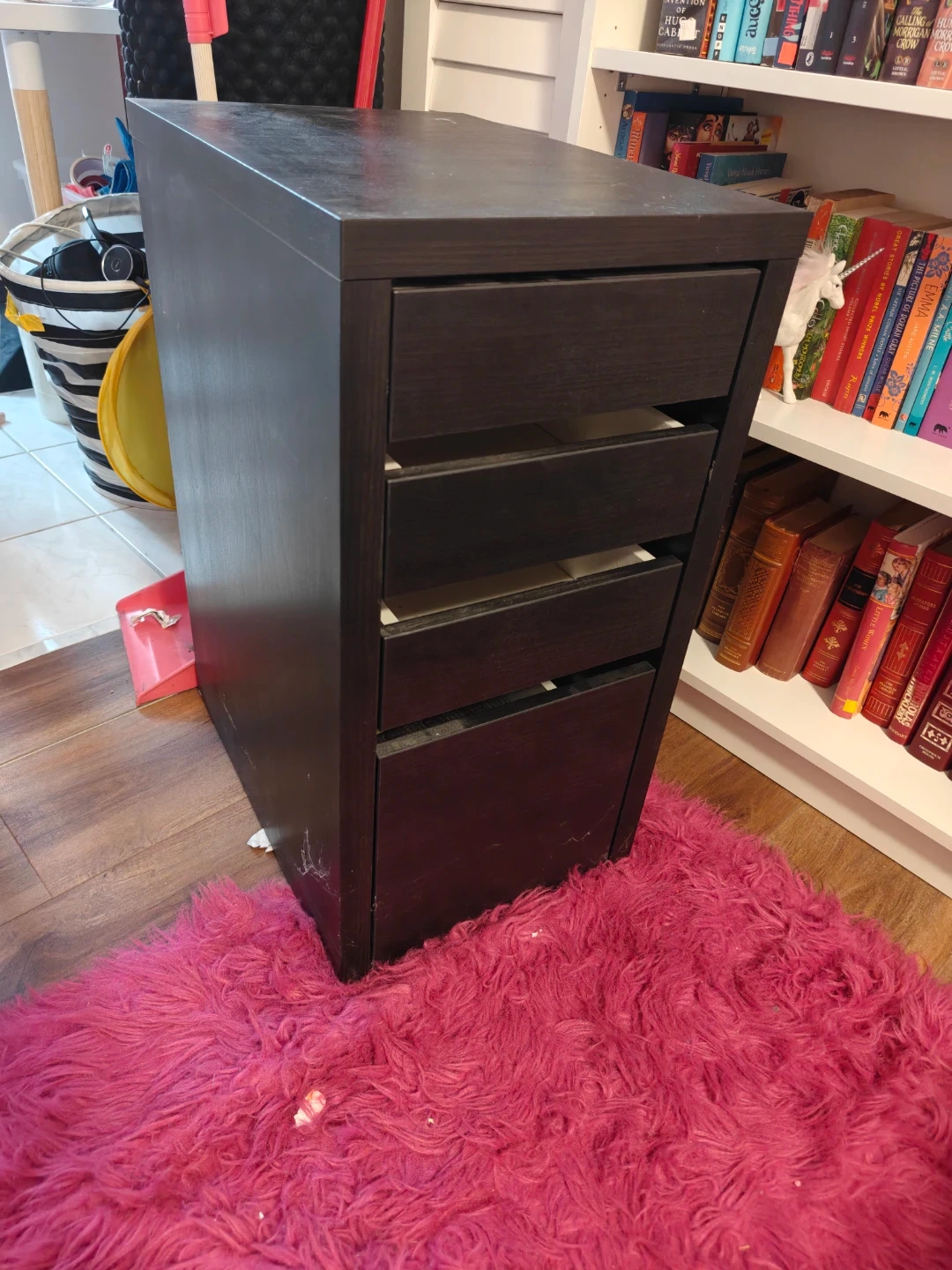 Selling a dark brown IKEA Micke drawer unit. It has some signs of use, but it's still in good condition and ready to organize your space.